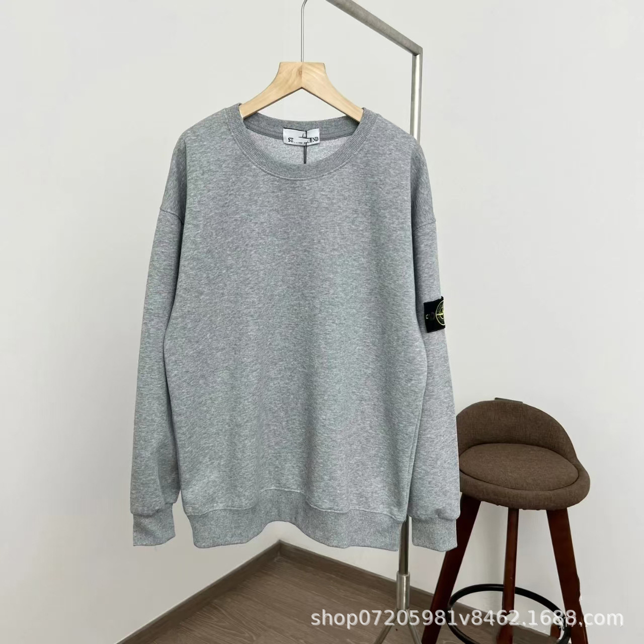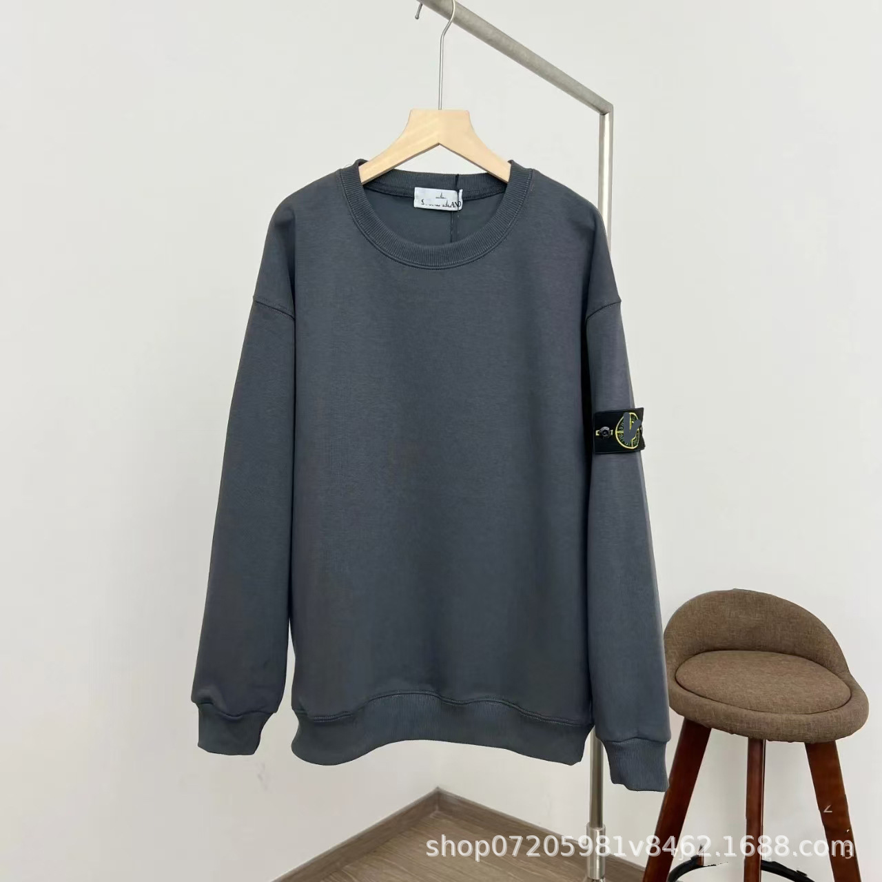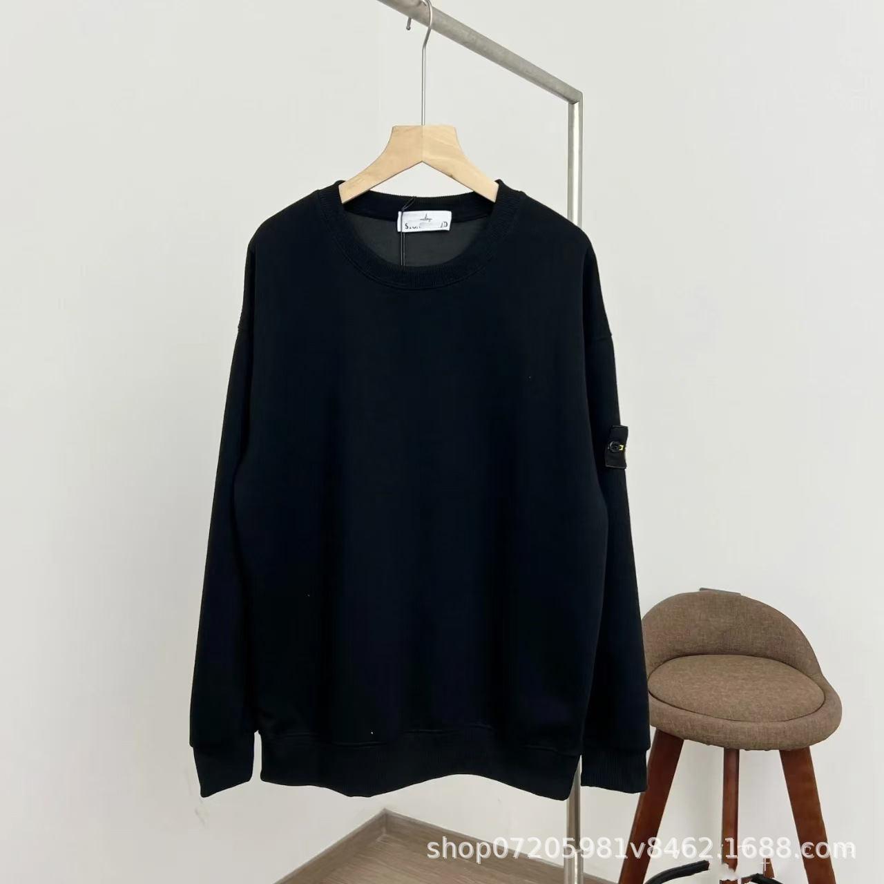 국경 간 소스 24 봄과 가을 단색 면화 완장 크루 넥 스웨터 남성과 여성 애호가 느슨한 긴 소매