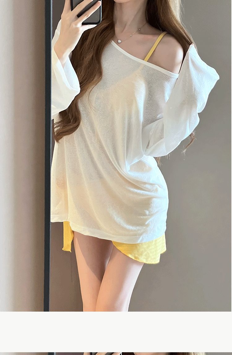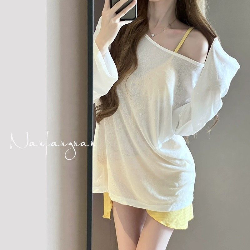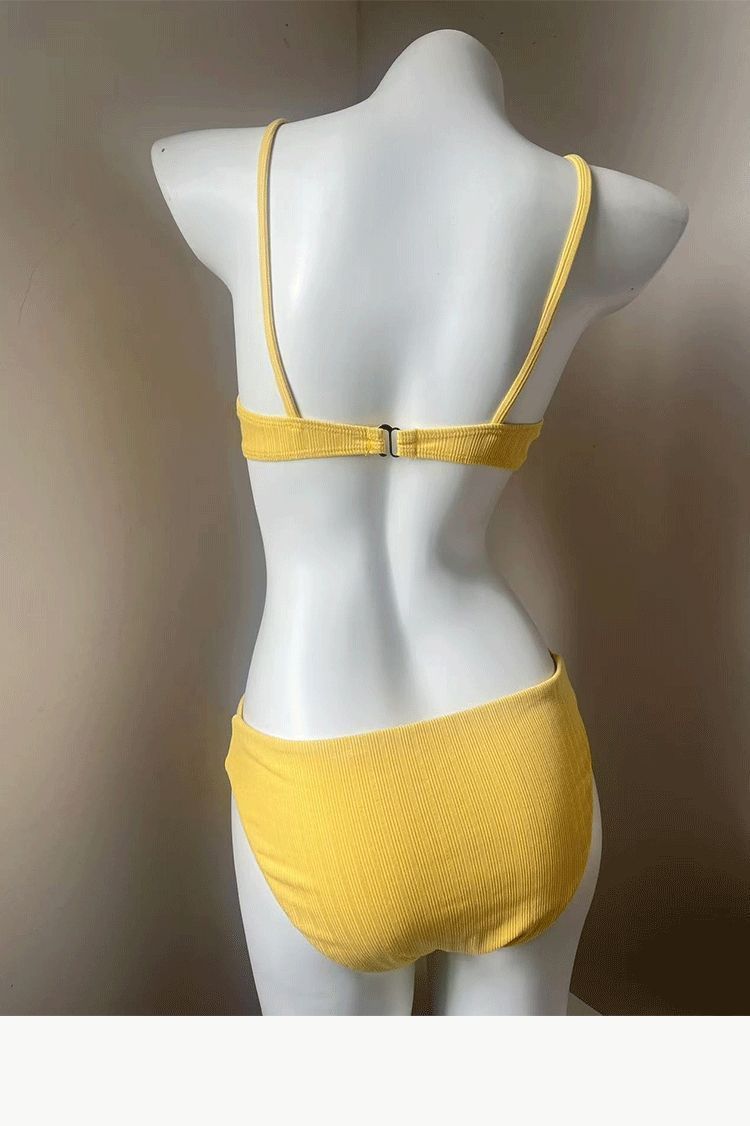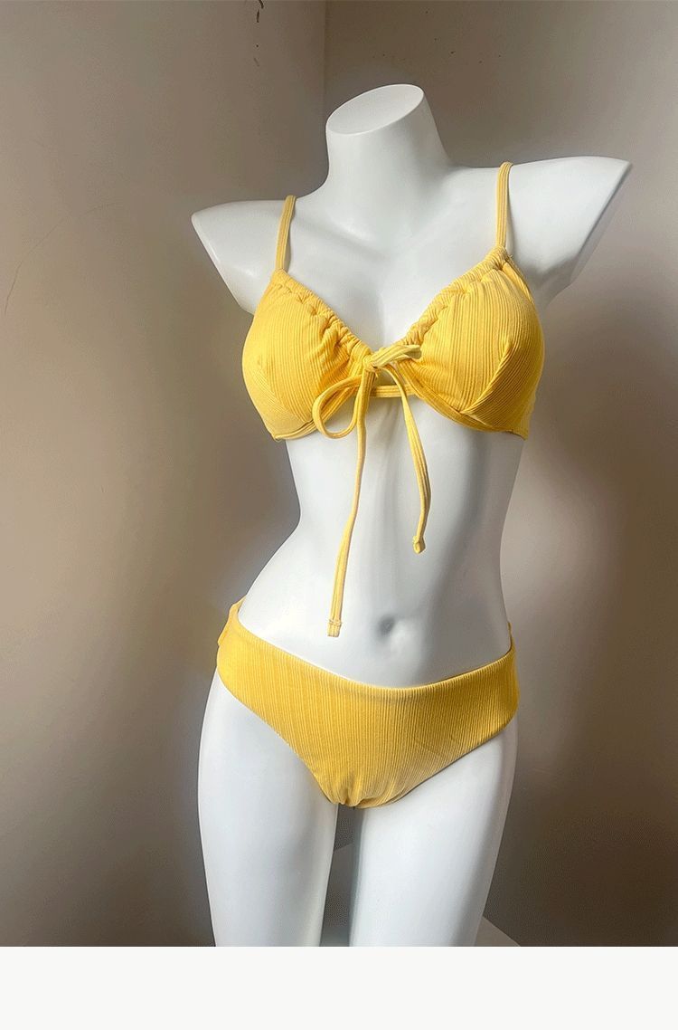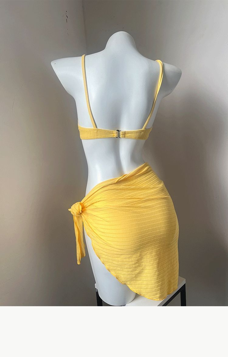 비키니 수영복 여성용 치킨 옐로우 3피스 섹시한 해변 휴가 온천 수영복 블라우스 포함 작은 가슴 푸시 업