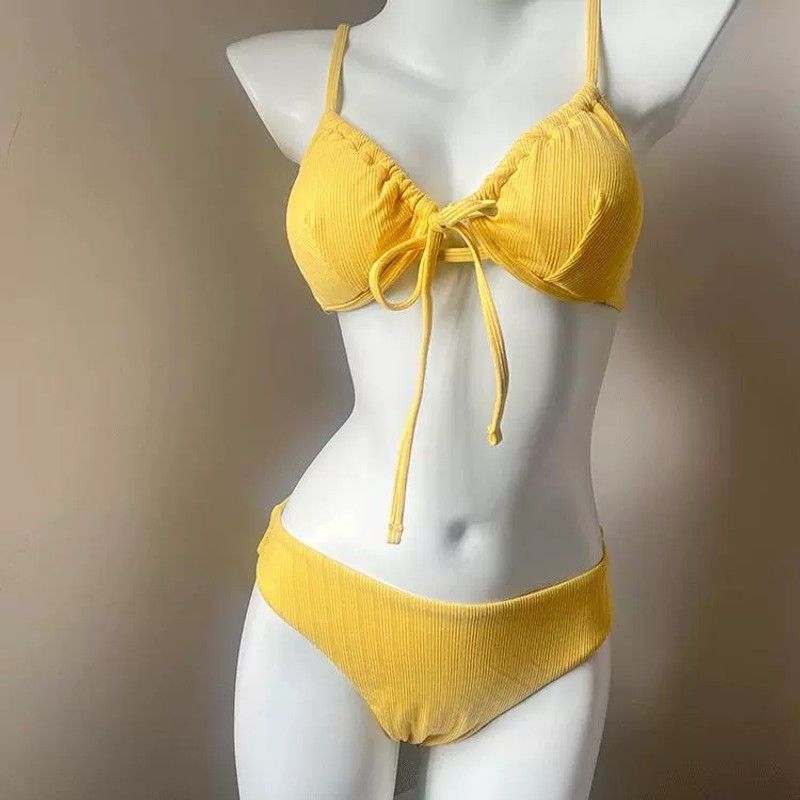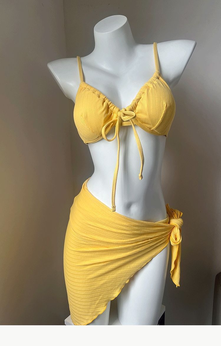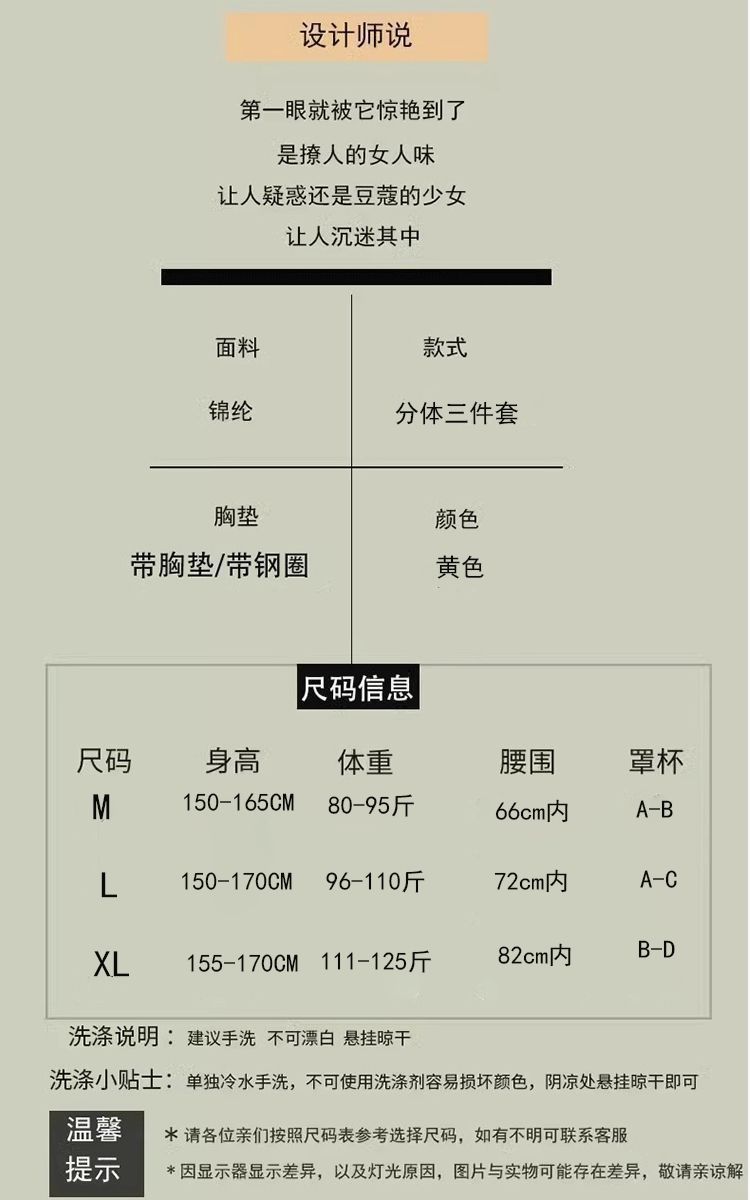비키니 수영복 여성용 치킨 옐로우 3피스 섹시한 해변 휴가 온천 수영복 블라우스 포함 작은 가슴 푸시 업스토어 가기