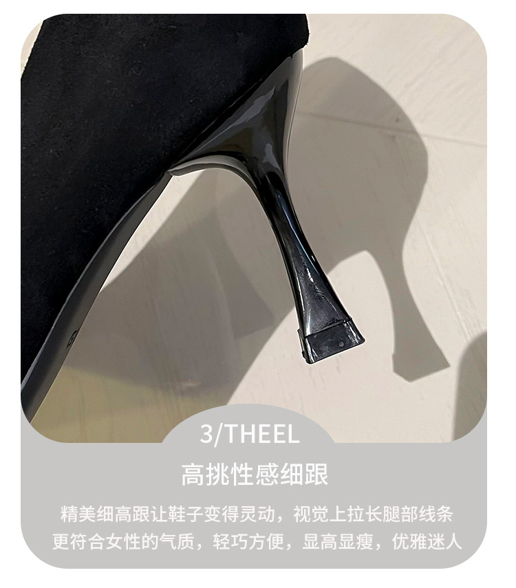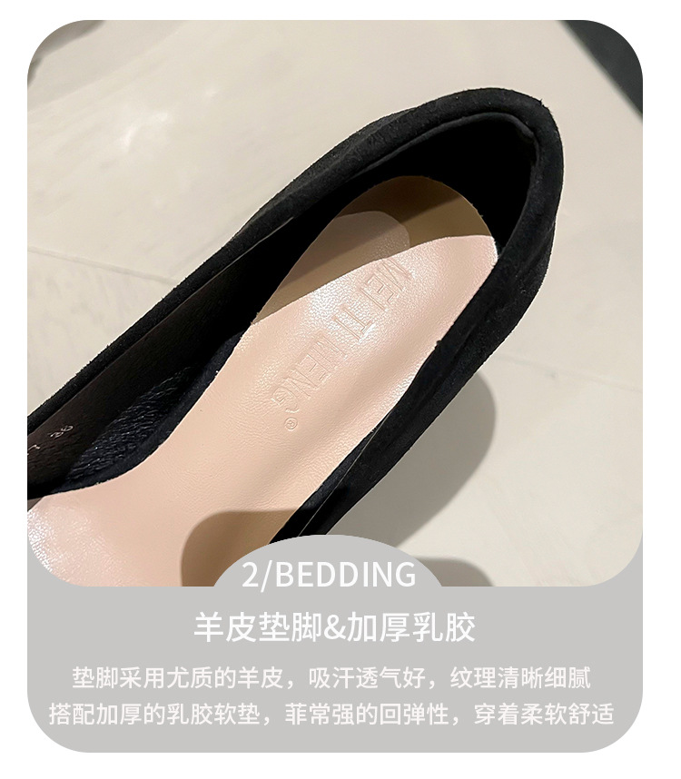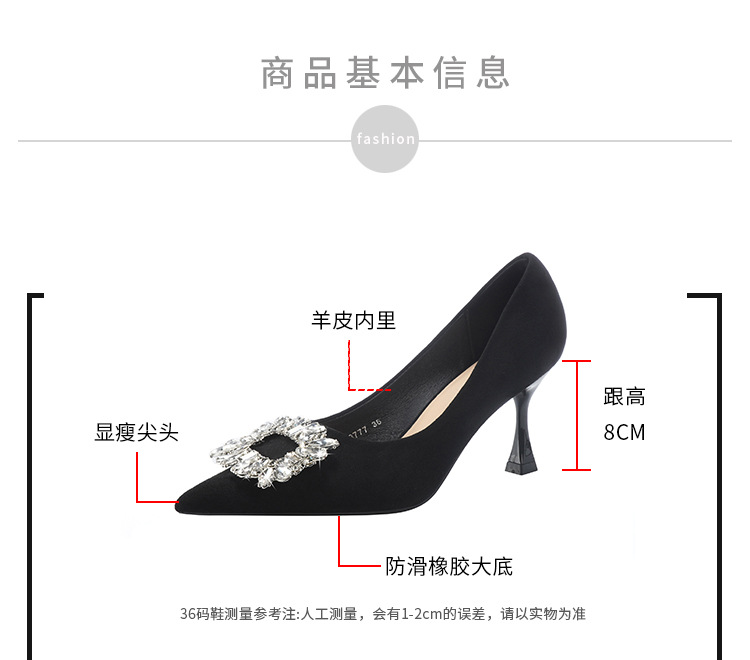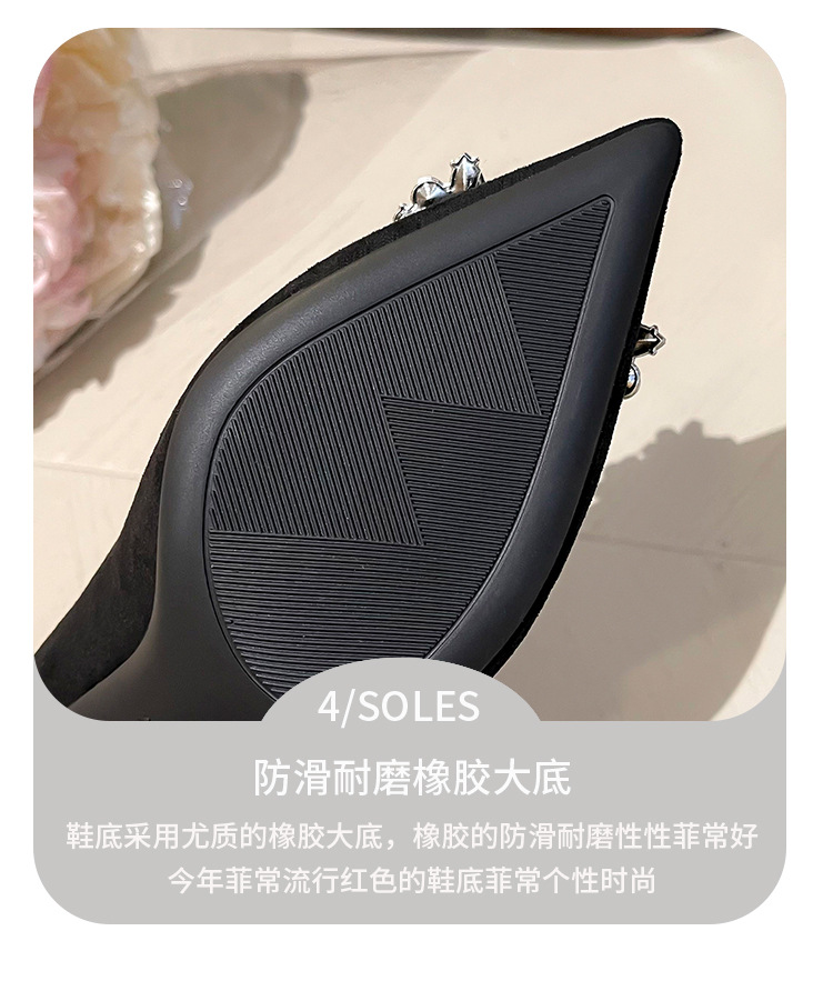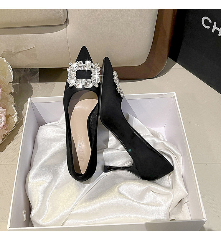 뾰족한 하이힐 스웨이드 2025 봄 새로운 도착 라인스톤 스퀘어 버클 올 매치 얇은 힐 라이트 럭셔리 우아한 싱글 레이어 신발 여성용 틈새스토어 가기