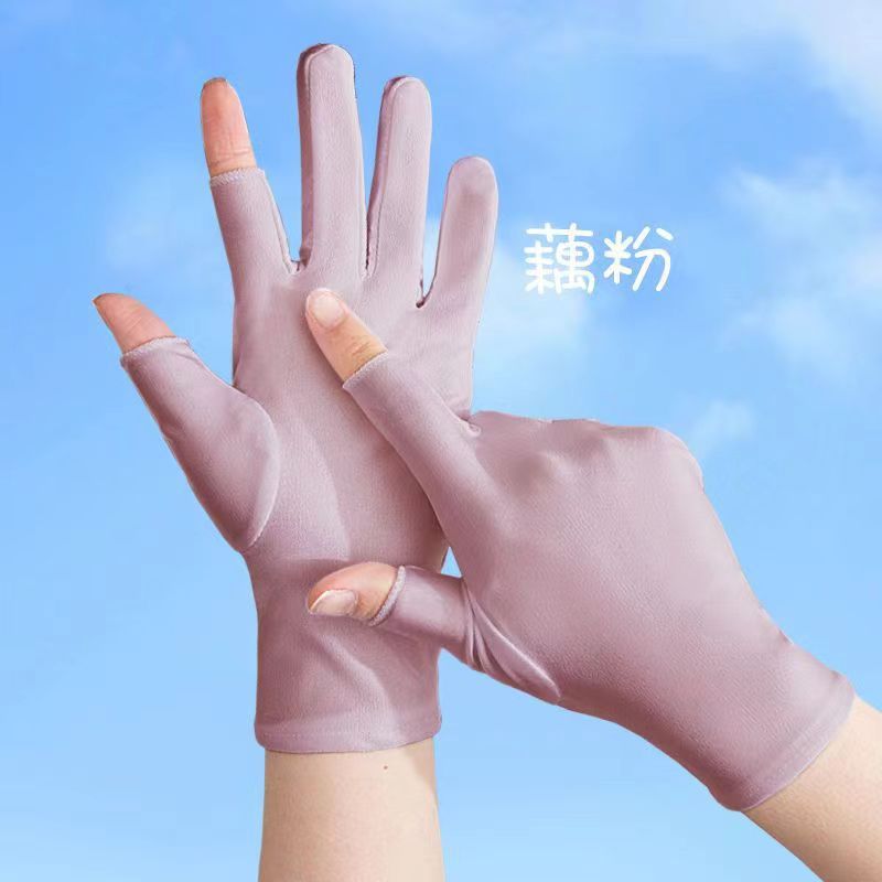 여성용 아이스 실크 장갑, 여름, 봄, 가을, 반쪽, 두 손가락, 차 따기, 자외선 차단제, 얇은, 사이클링 및 운전, 두 손가락