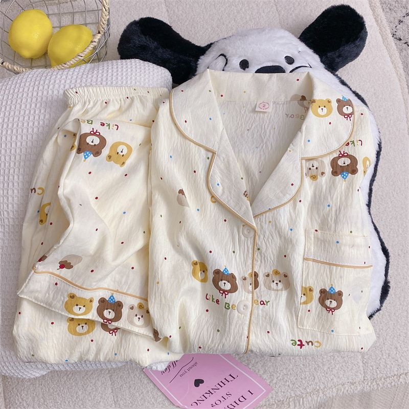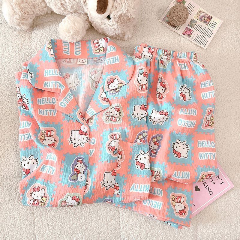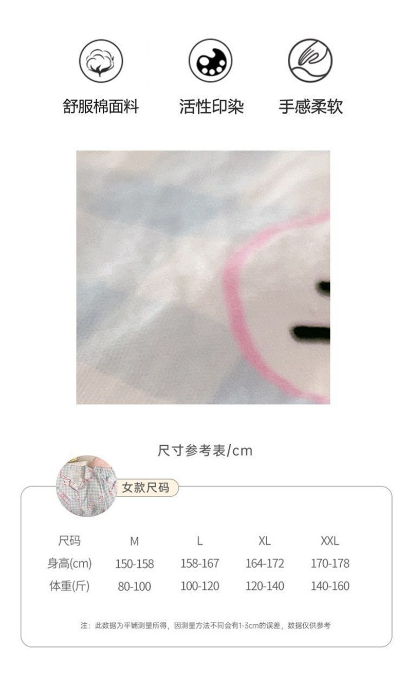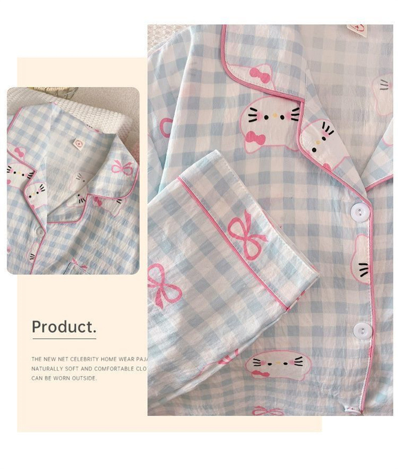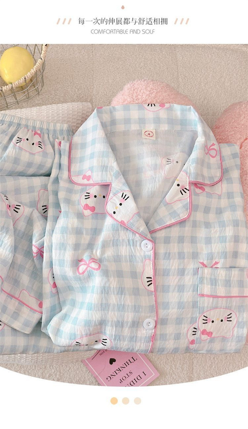 구름면 만화 키티 잠옷 여성의 봄과 가을 긴 소매 Ins 스타일 일본 스타일 귀여운 격자 무늬 여름 홈 옷스토어 가기