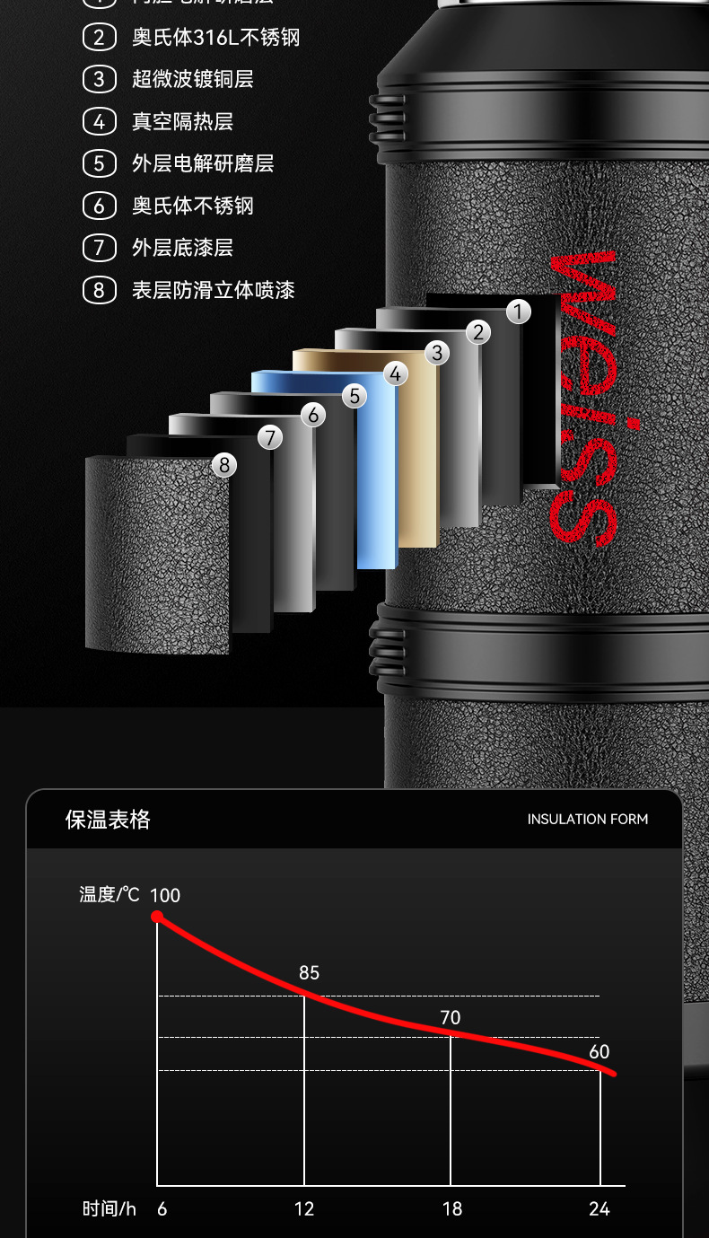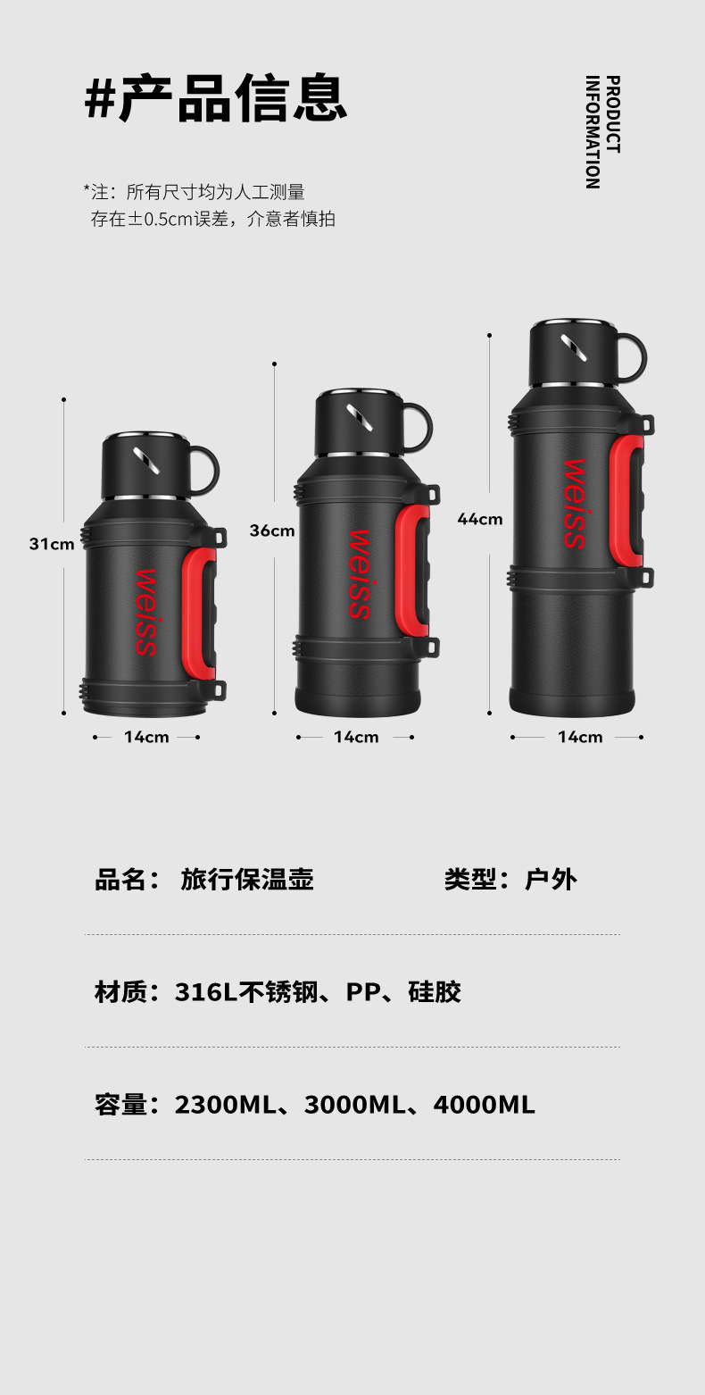 야외 여행용 대용량 316 스테인리스 보온병 휴대용 스포츠 차량용 등산 물병 신제품