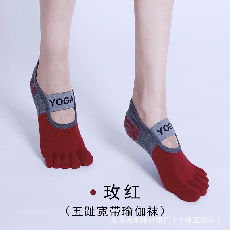 재고 있음, 공장 직판, 요가 양말, 미끄럼 방지 양말, 전문 여성용 5손가락 배색 양말, 피트니스 필라테스 양말, 짧은 스타일