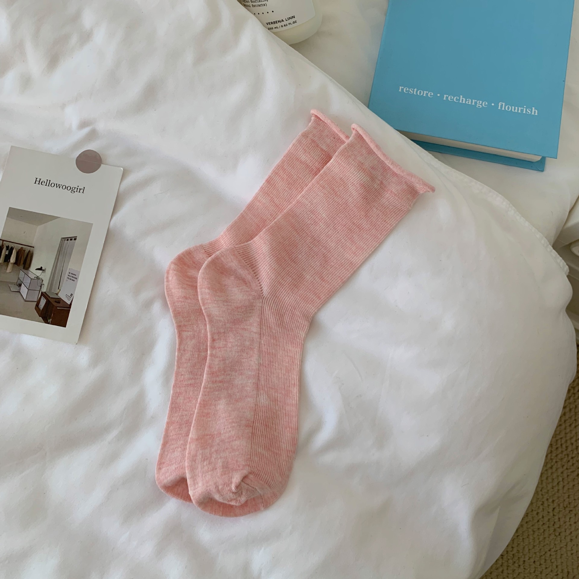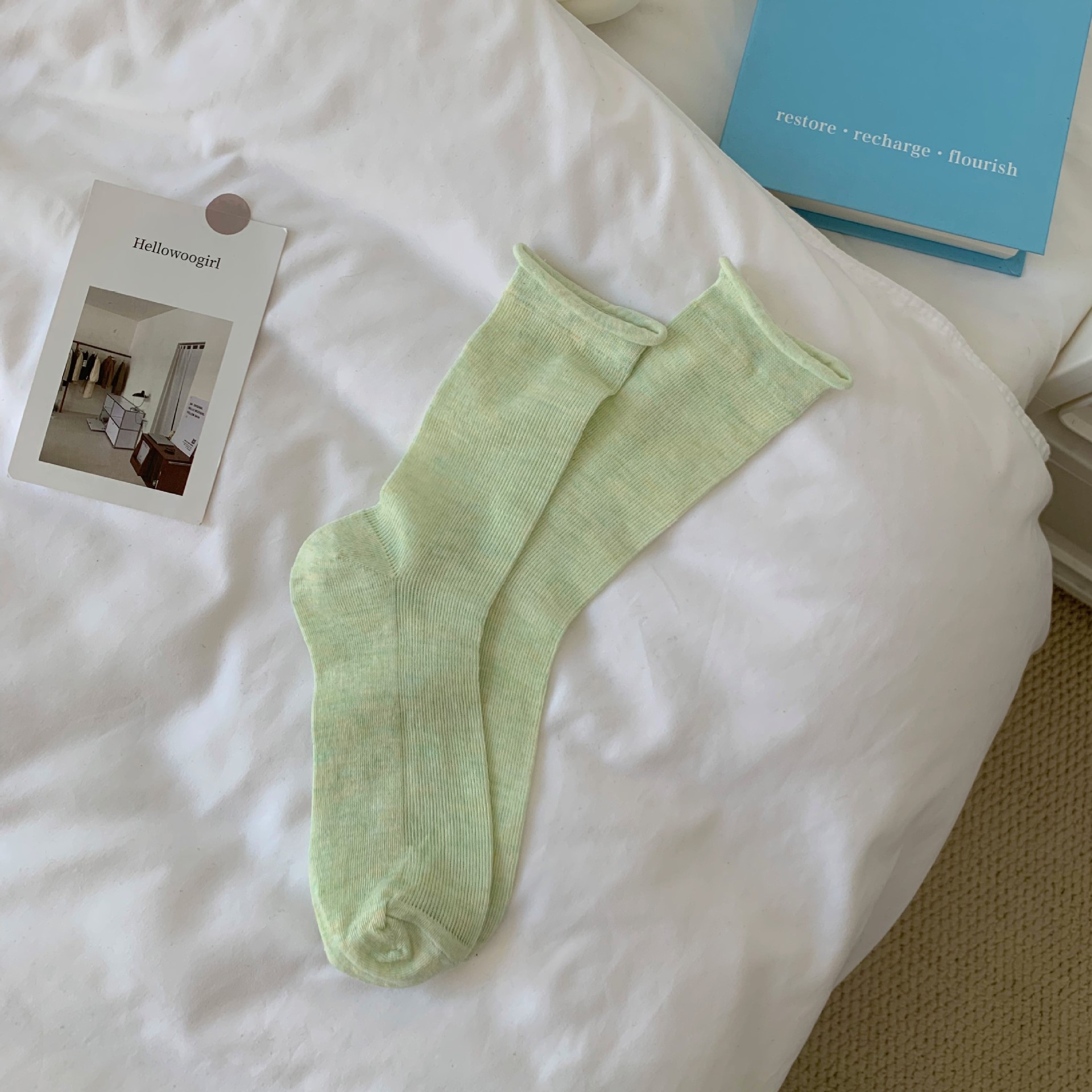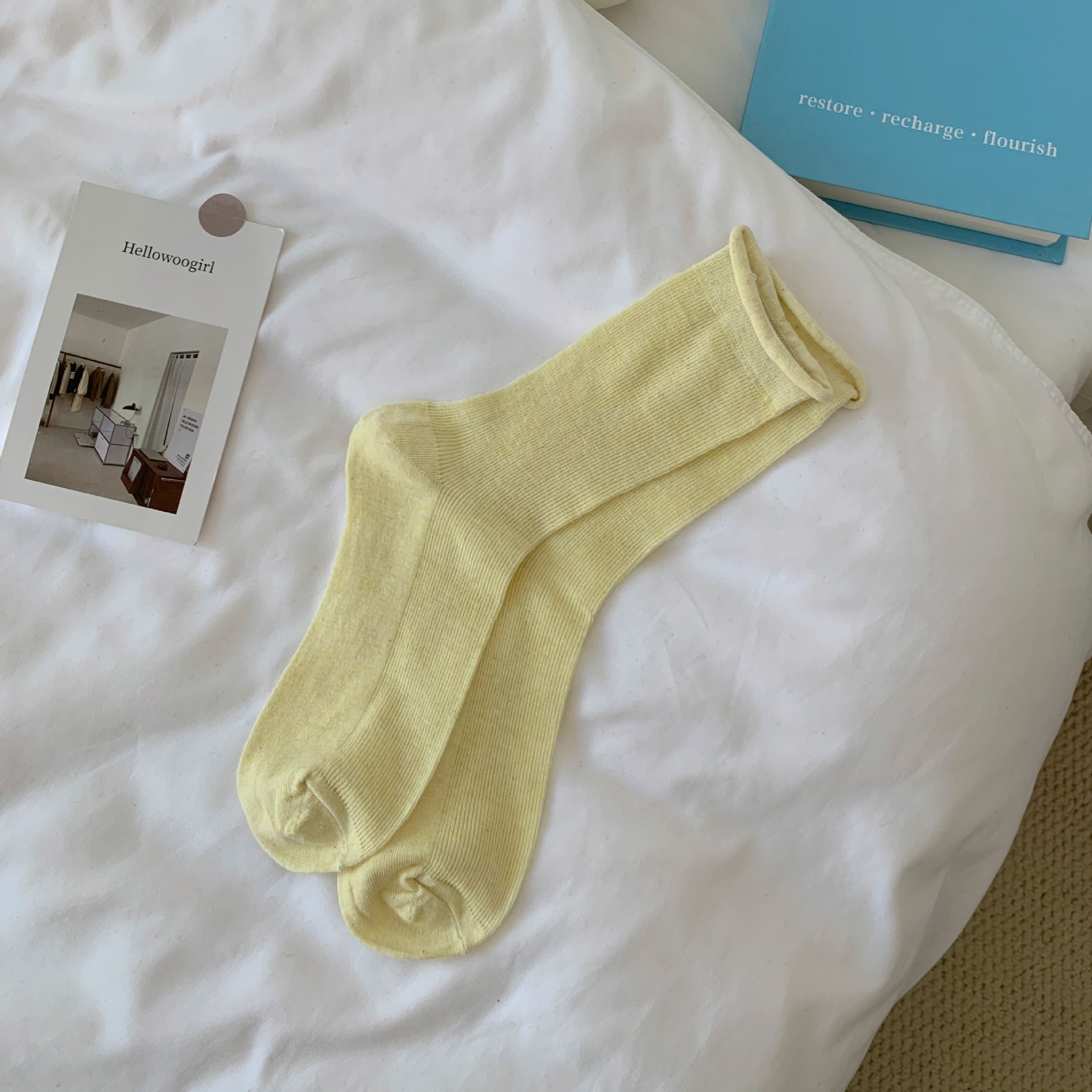 여름용 여성용 기본 단색 양말 얇은 한국식 인 컬링 양말 캔디 컬러 코튼 봄 여름 얇은 양말