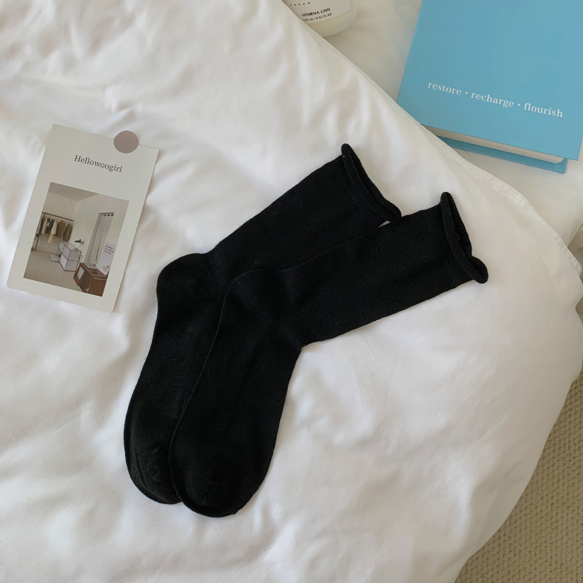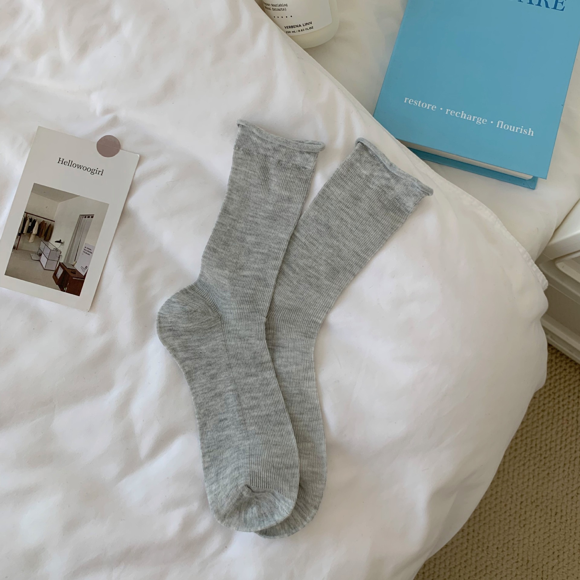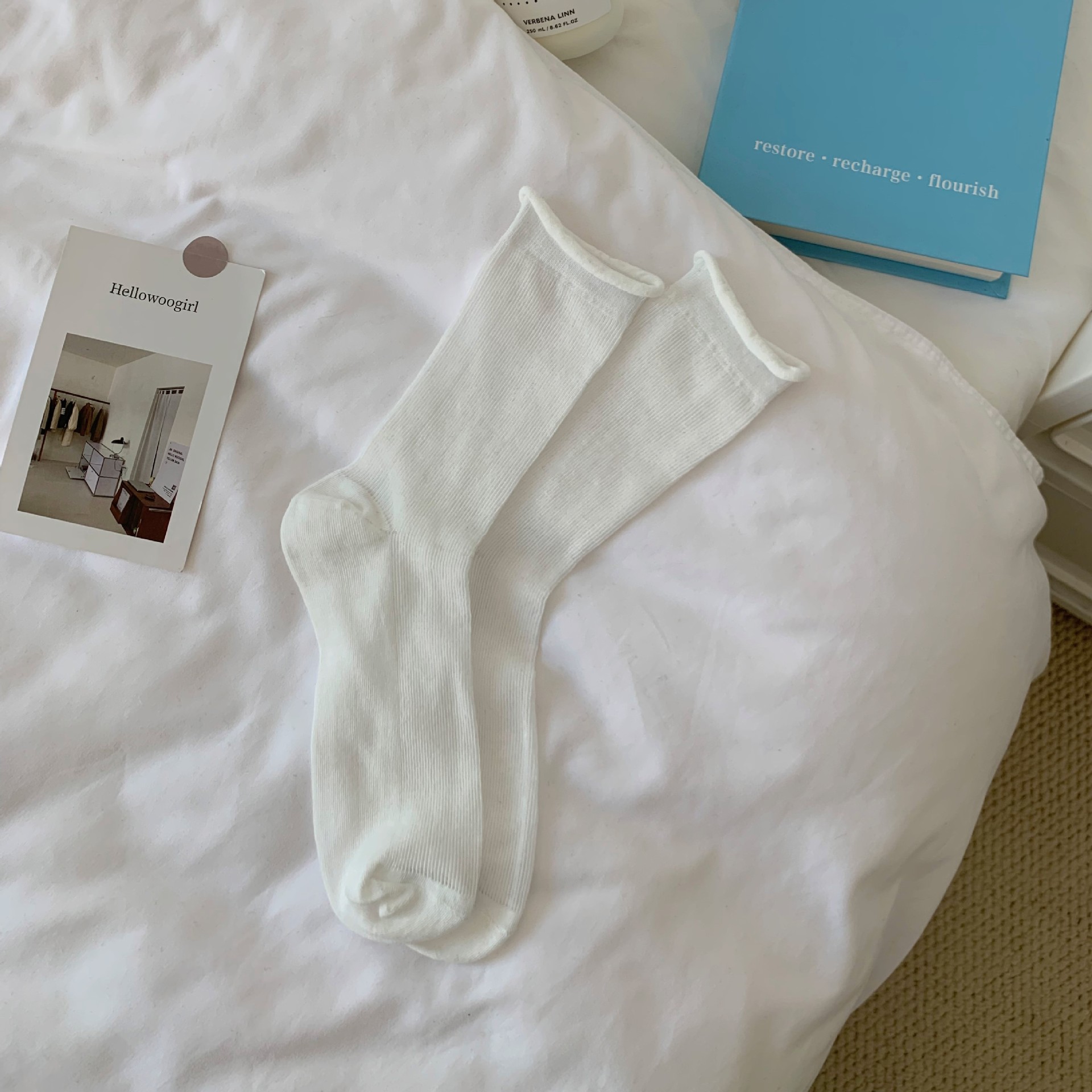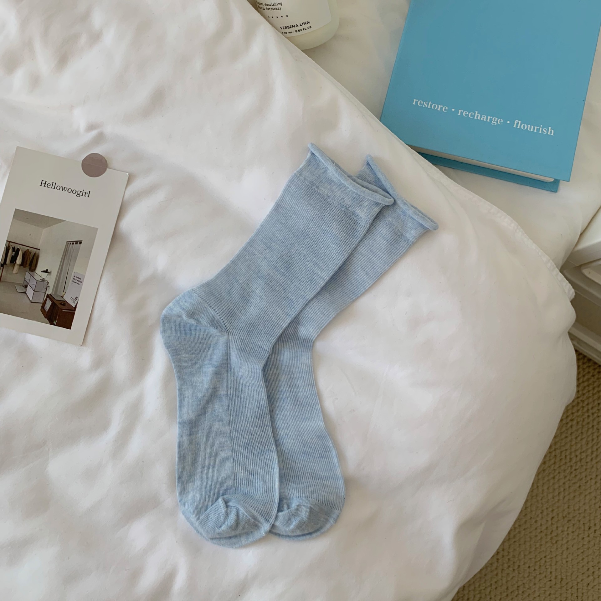여름용 여성용 기본 단색 양말 얇은 한국식 인 컬링 양말 캔디 컬러 코튼 봄 여름 얇은 양말