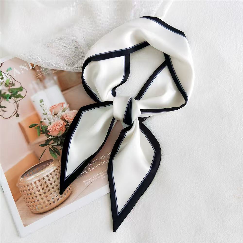 긴 실크 스카프 여성 하이 엔드 작은 광장 스카프 봄과 가을 여름 검은 목 보호 스카프 일치하는 셔츠 리본 넥타이