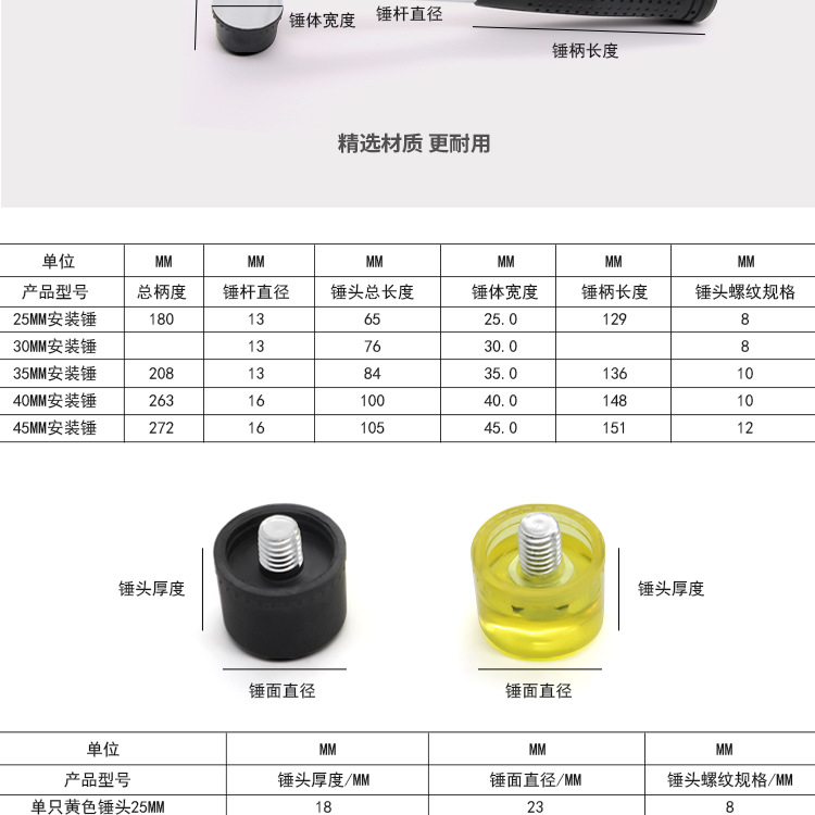 고무 망치 타일 다기능 전문 고무 망치 피부 해머 부드러운 고무 같은 피부 해머 바닥 래핑 해머 설치 해머스토어 가기