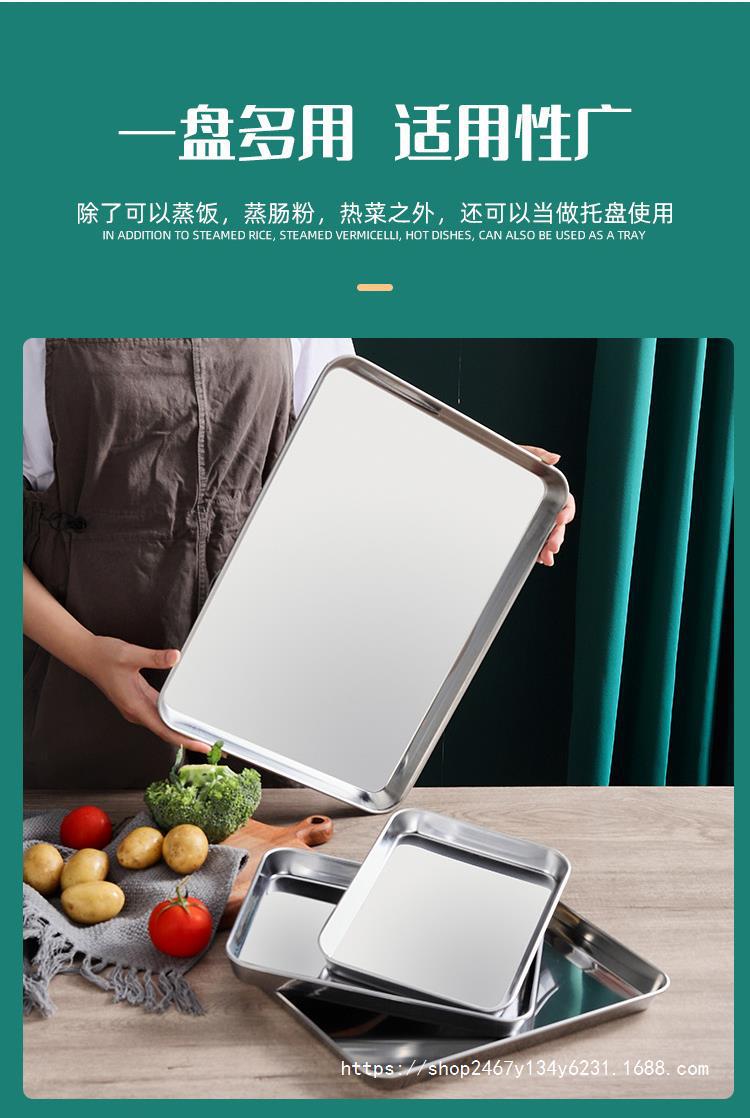 304 가정용 찐빵 특수 찐 접시 직사각형 스테인레스 스틸 접시 플랫 바닥 트레이 냉면 파우더 접시 도구 세트