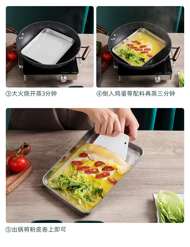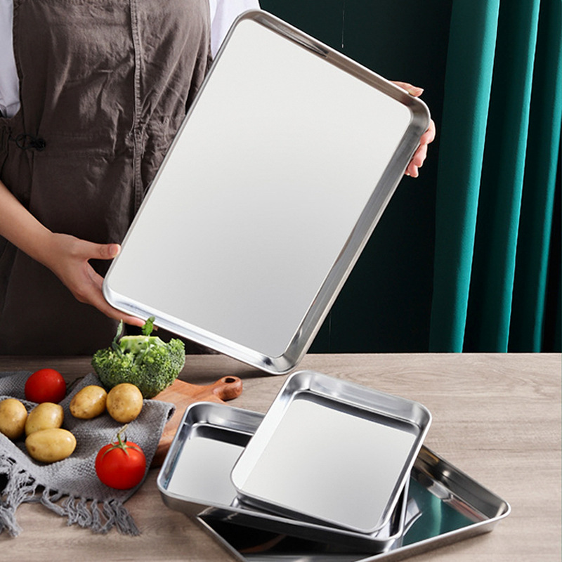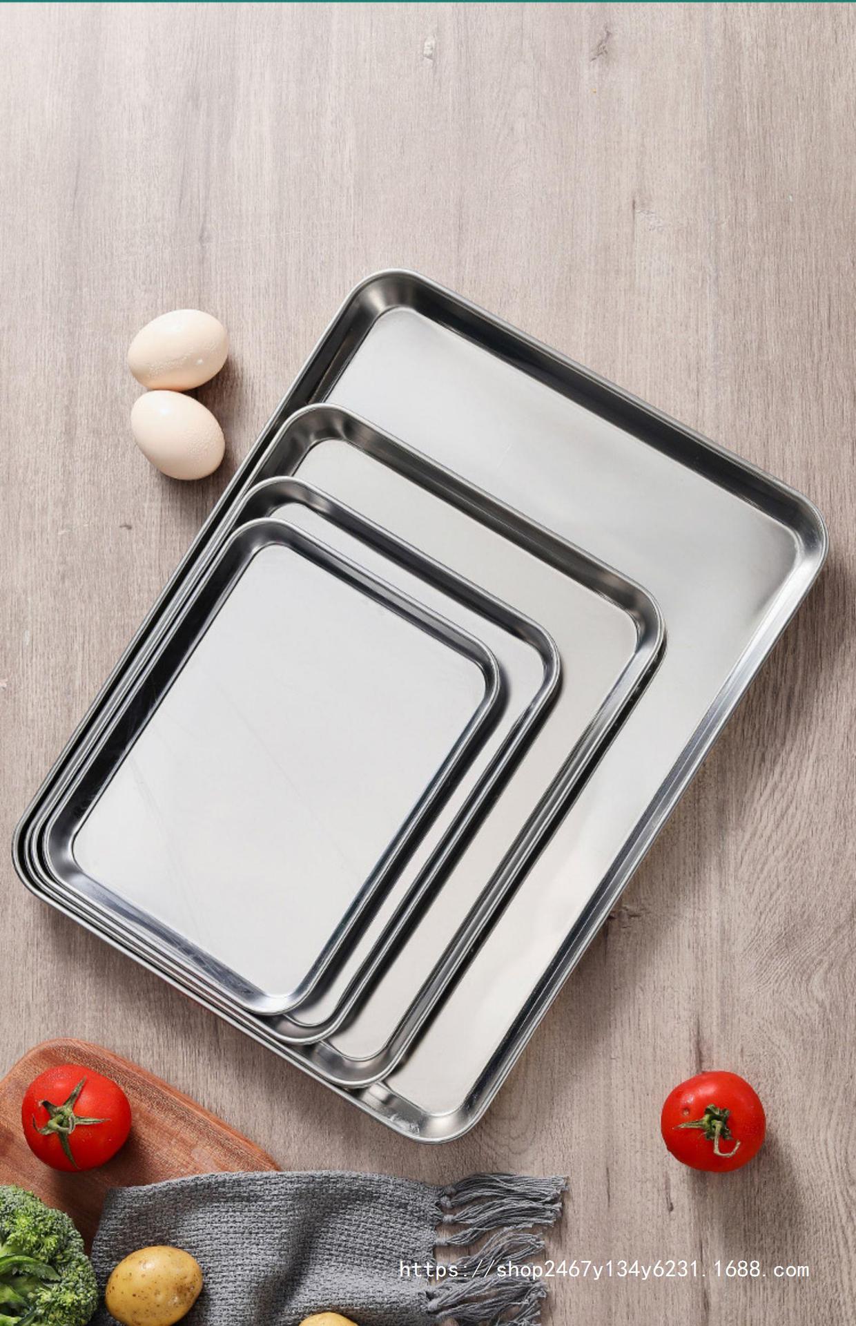 304 가정용 찐빵 특수 찐 접시 직사각형 스테인레스 스틸 접시 플랫 바닥 트레이 냉면 파우더 접시 도구 세트스토어 가기