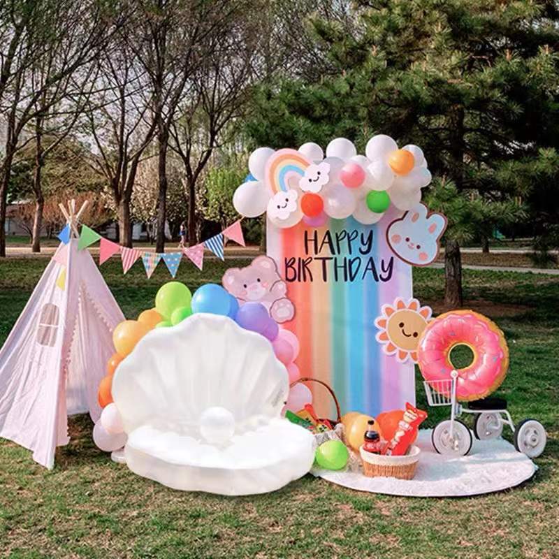 인터넷 연예인 풍선 쉘 소파 생일 장면 레이아웃 아기 한 살짜리 테마 결혼식 DIY 야외 파티 장식