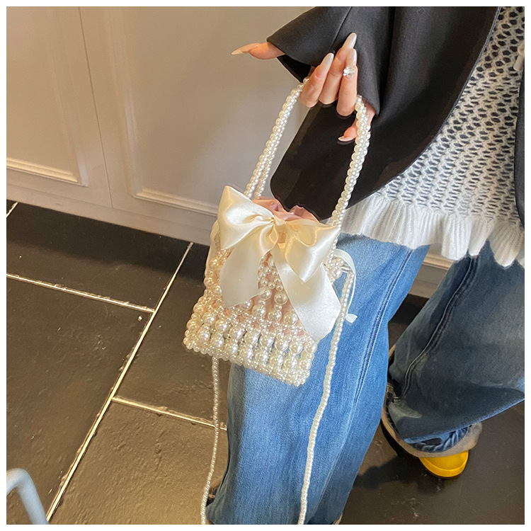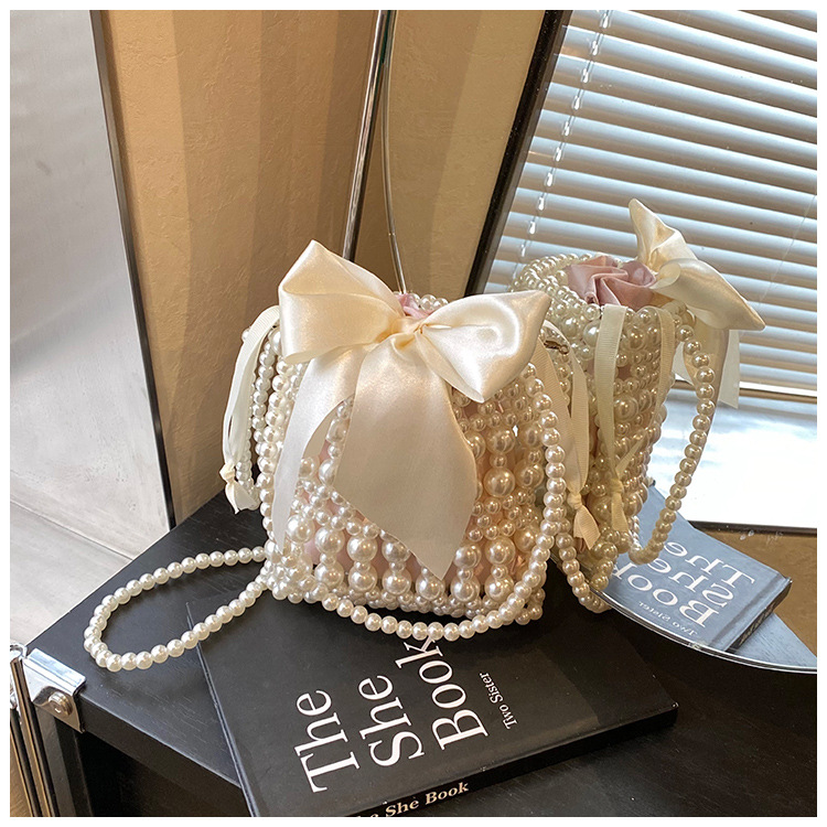 여성을위한 요정 진주 가방 2022 새로운 패션 달콤한 보우 체인 버킷 가방 틈새 다목적 크로스 바디 백