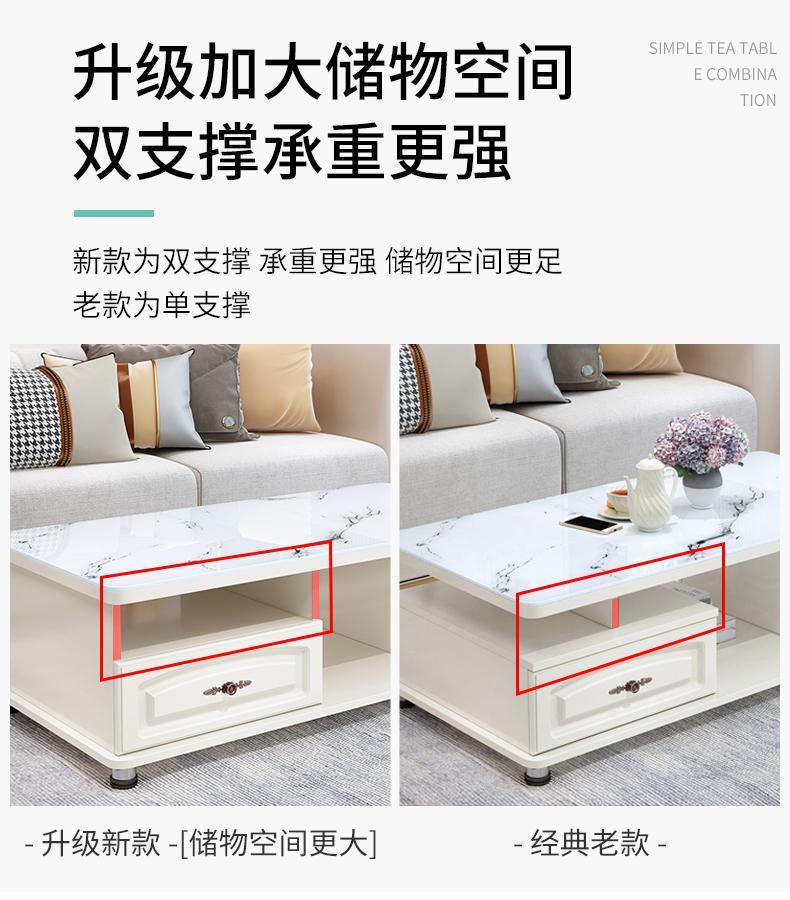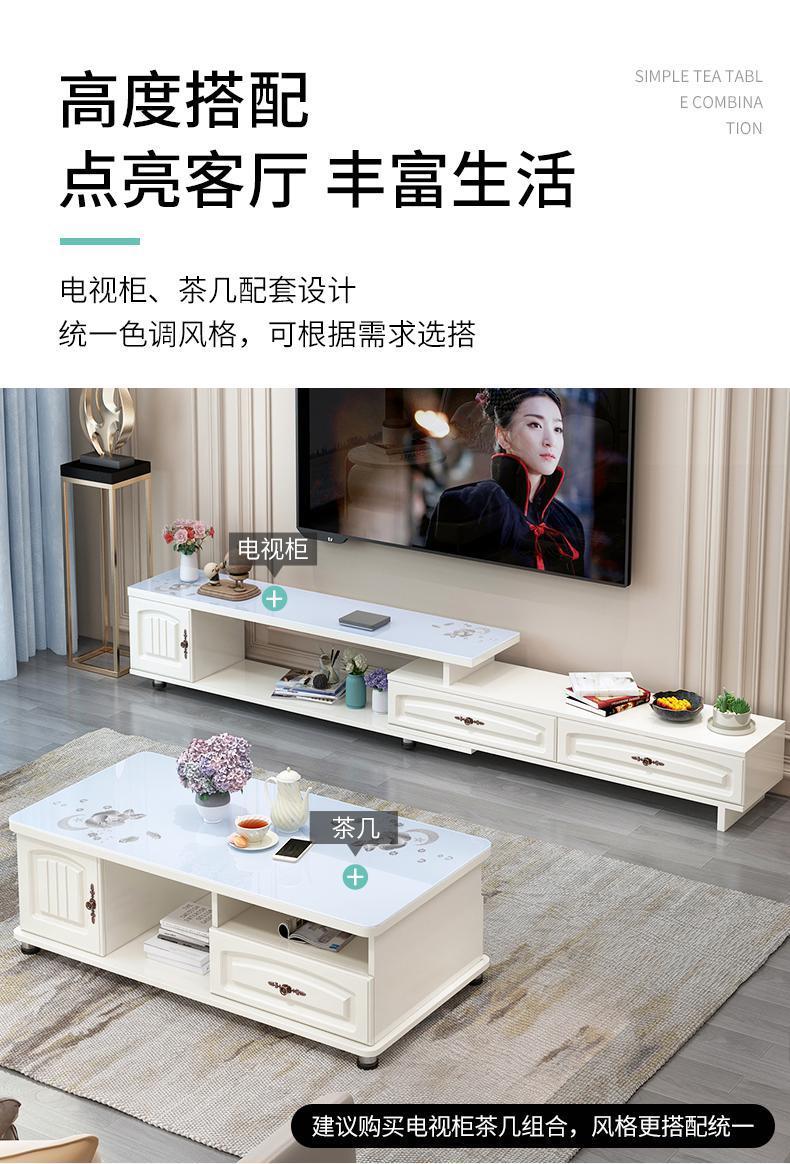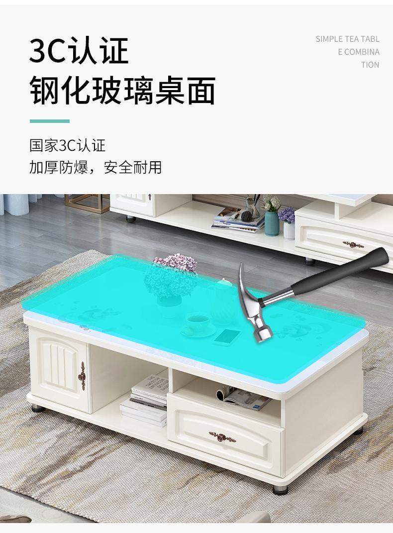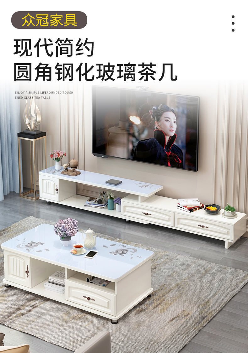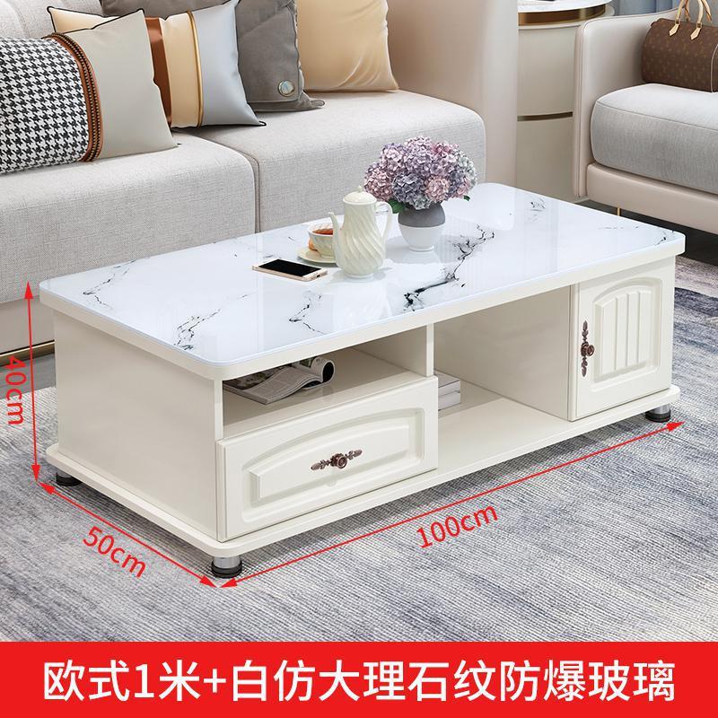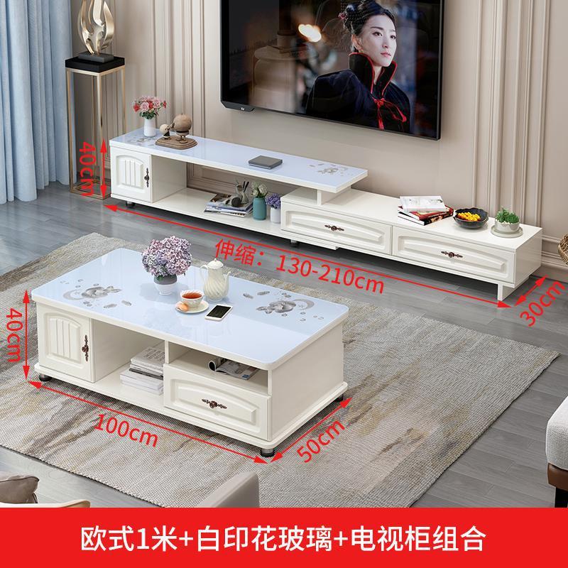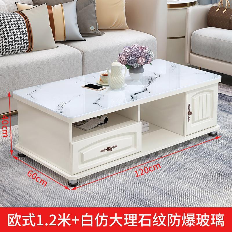 • 유럽풍 1.2m 화이트 스톤 패턴 유리 커피 테이블 + TV 캐비닛