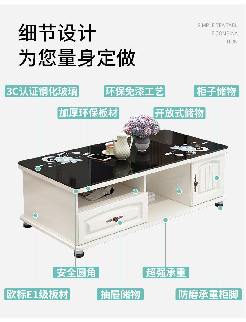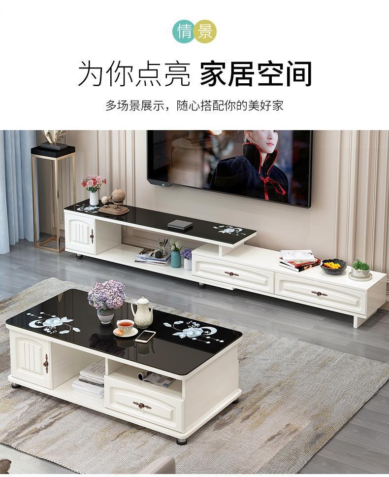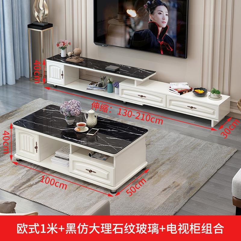 • 유럽 ​​스타일 1.2m + 블랙 스톤 패턴 유리 커피 테이블 + TV 캐비닛