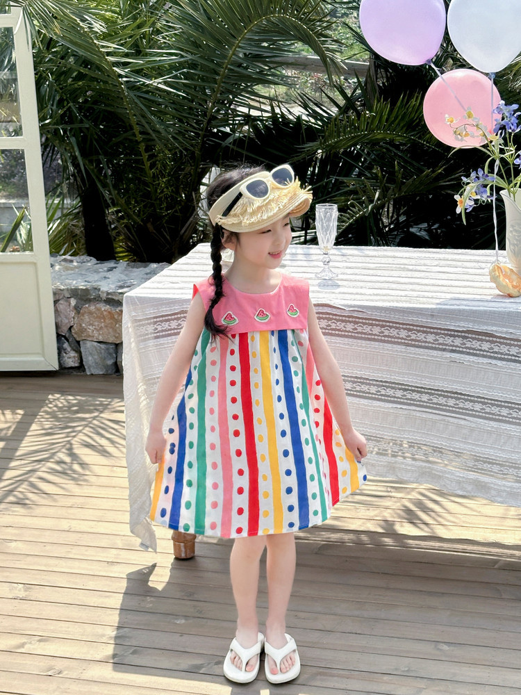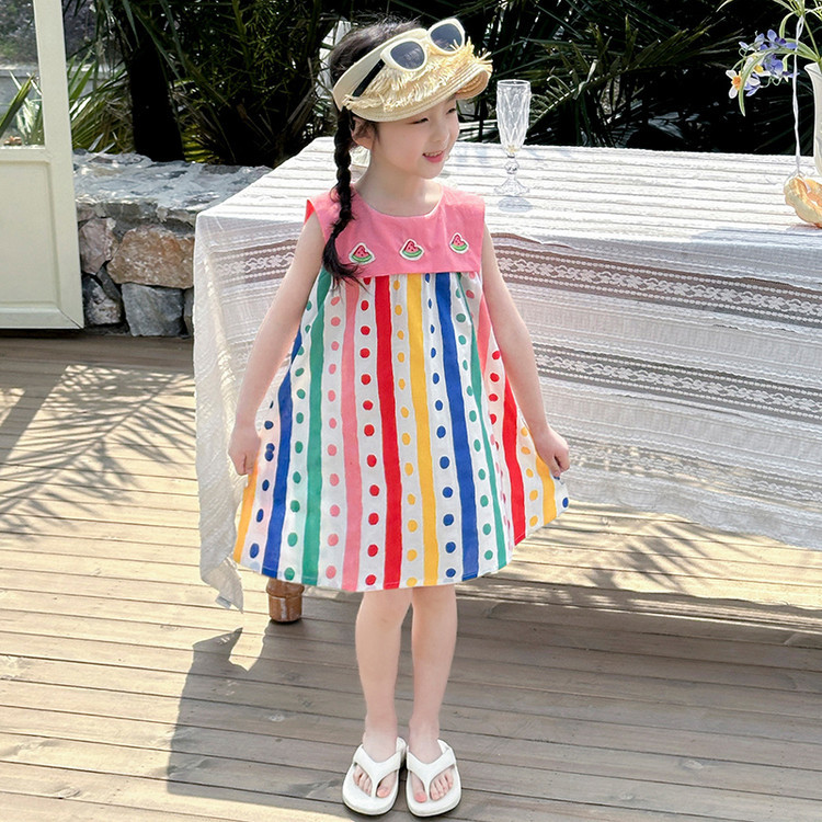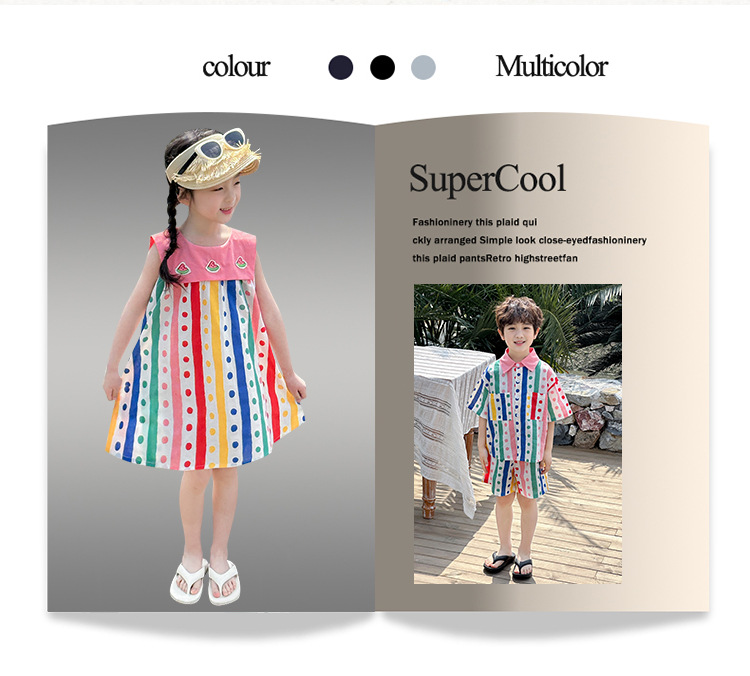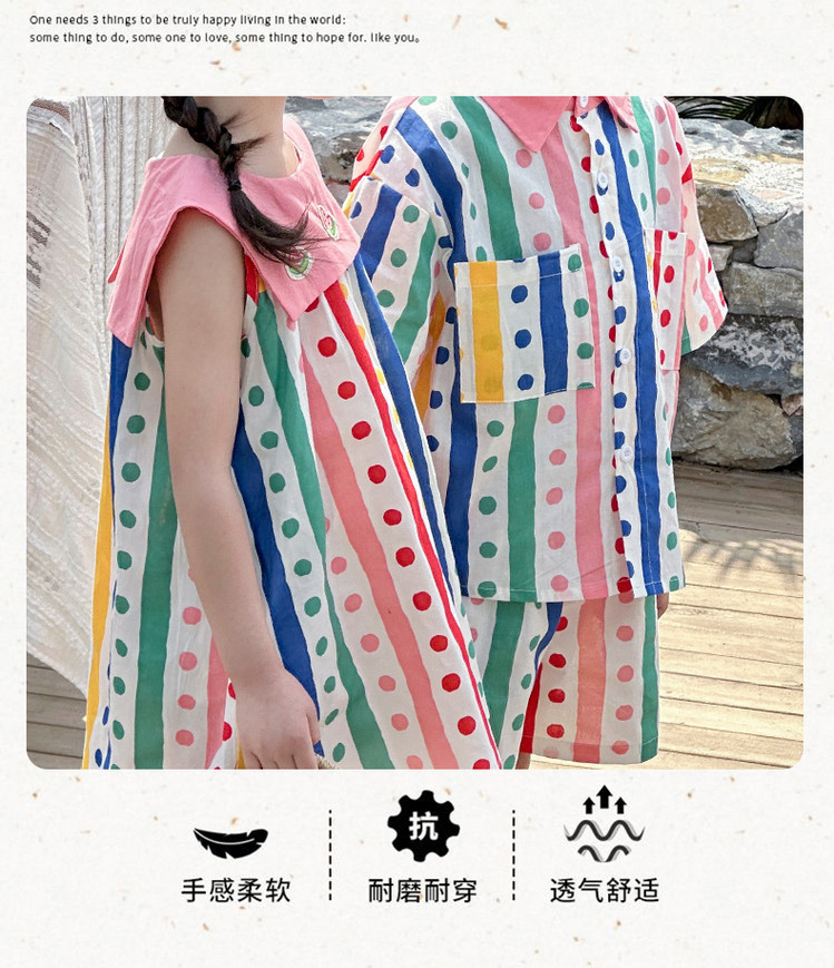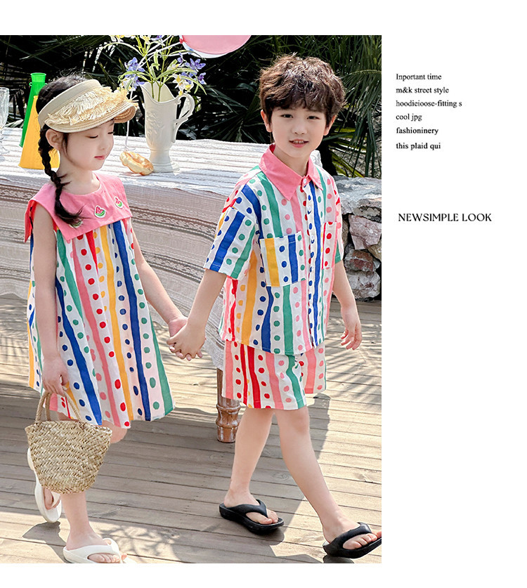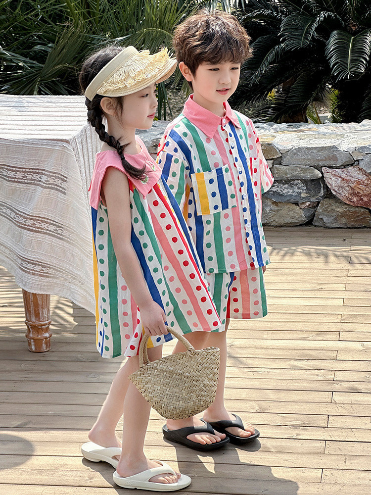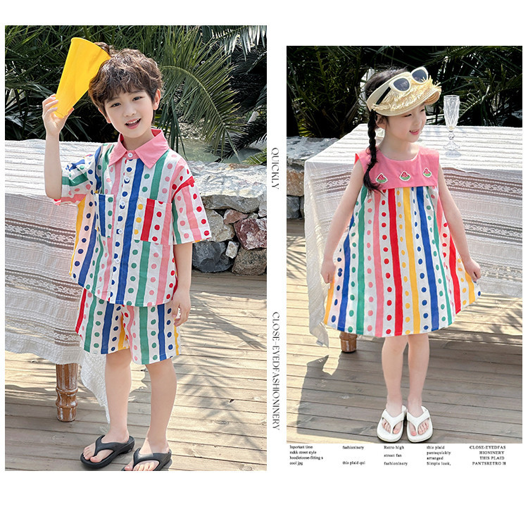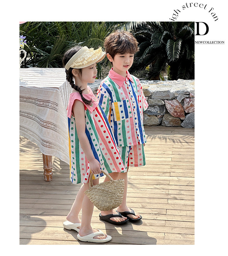 여름 새 소년과 소녀 무지개 웨이브 도트 인쇄 양복 25 년 셔츠 드레스 형제와 자매 여름 새 양복스토어 가기