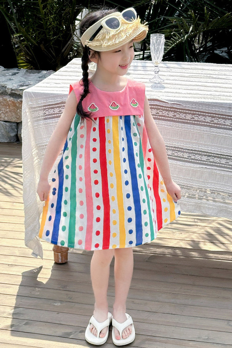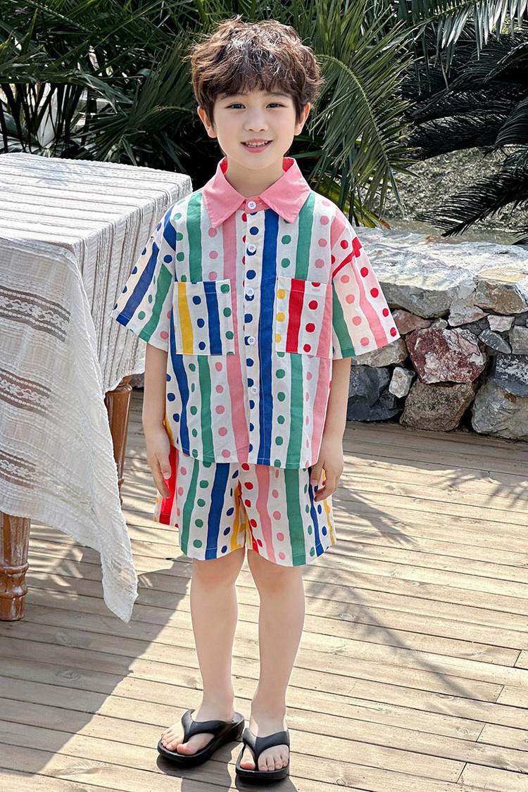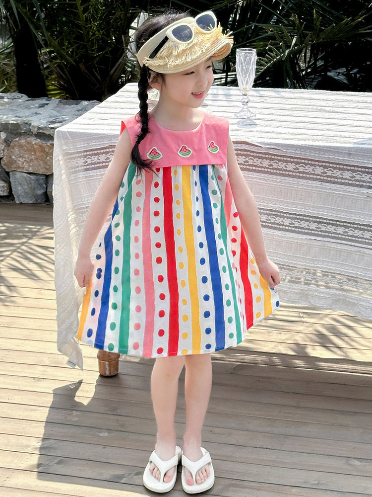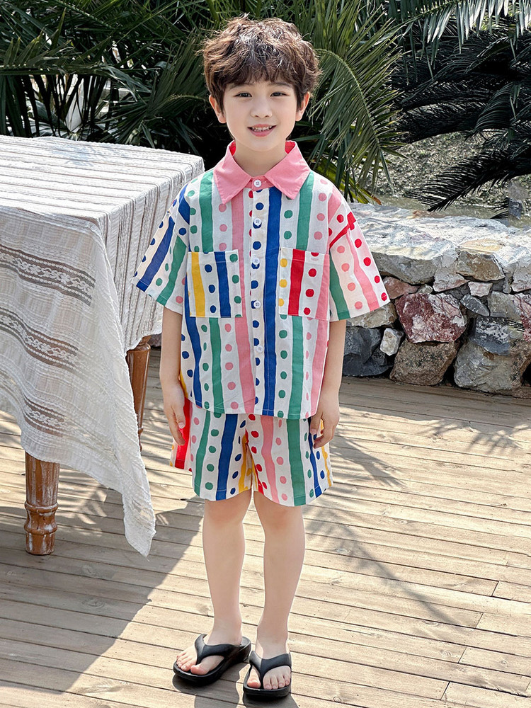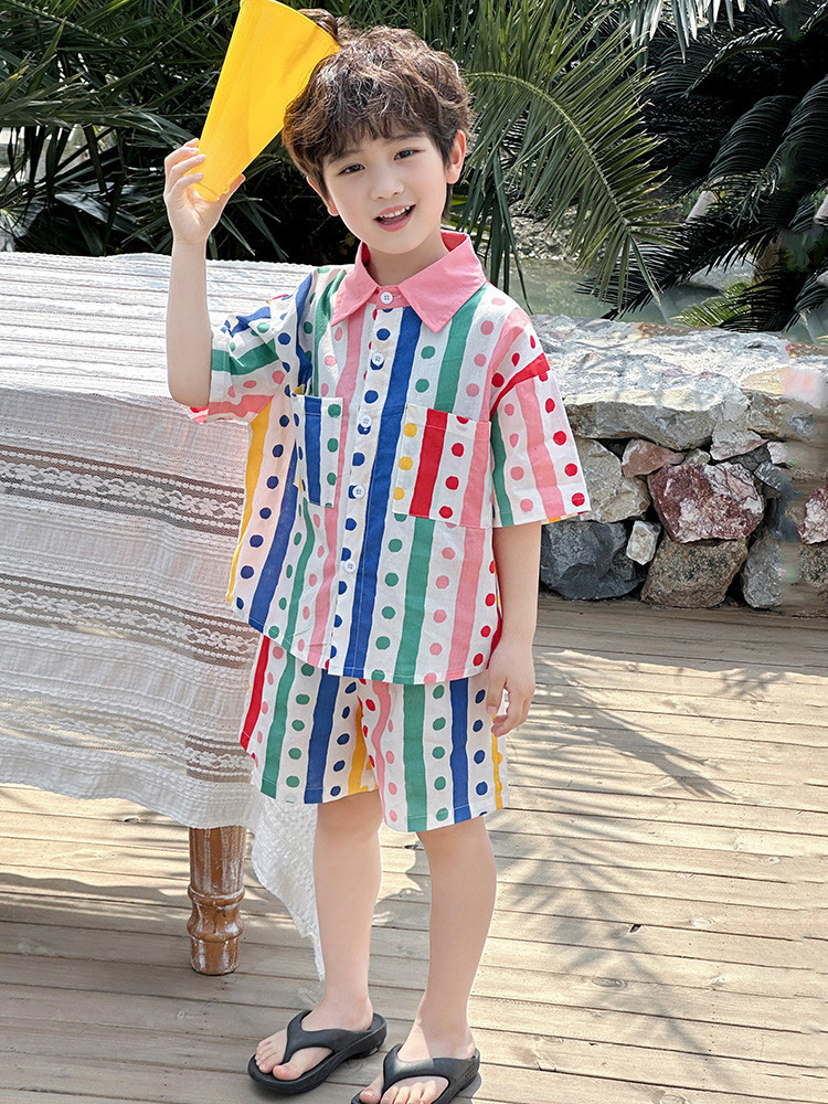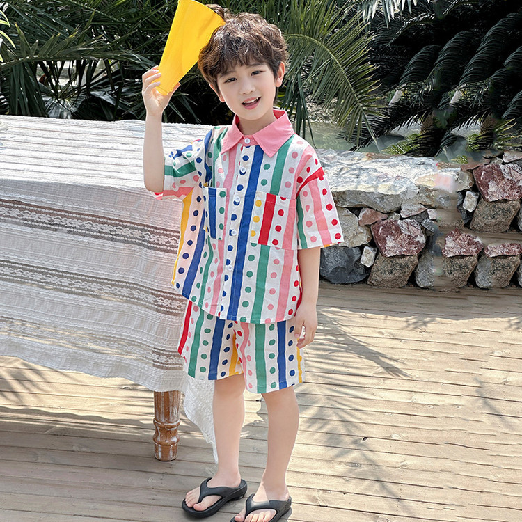 여름 새 소년과 소녀 무지개 웨이브 도트 인쇄 양복 25 년 셔츠 드레스 형제와 자매 여름 새 양복