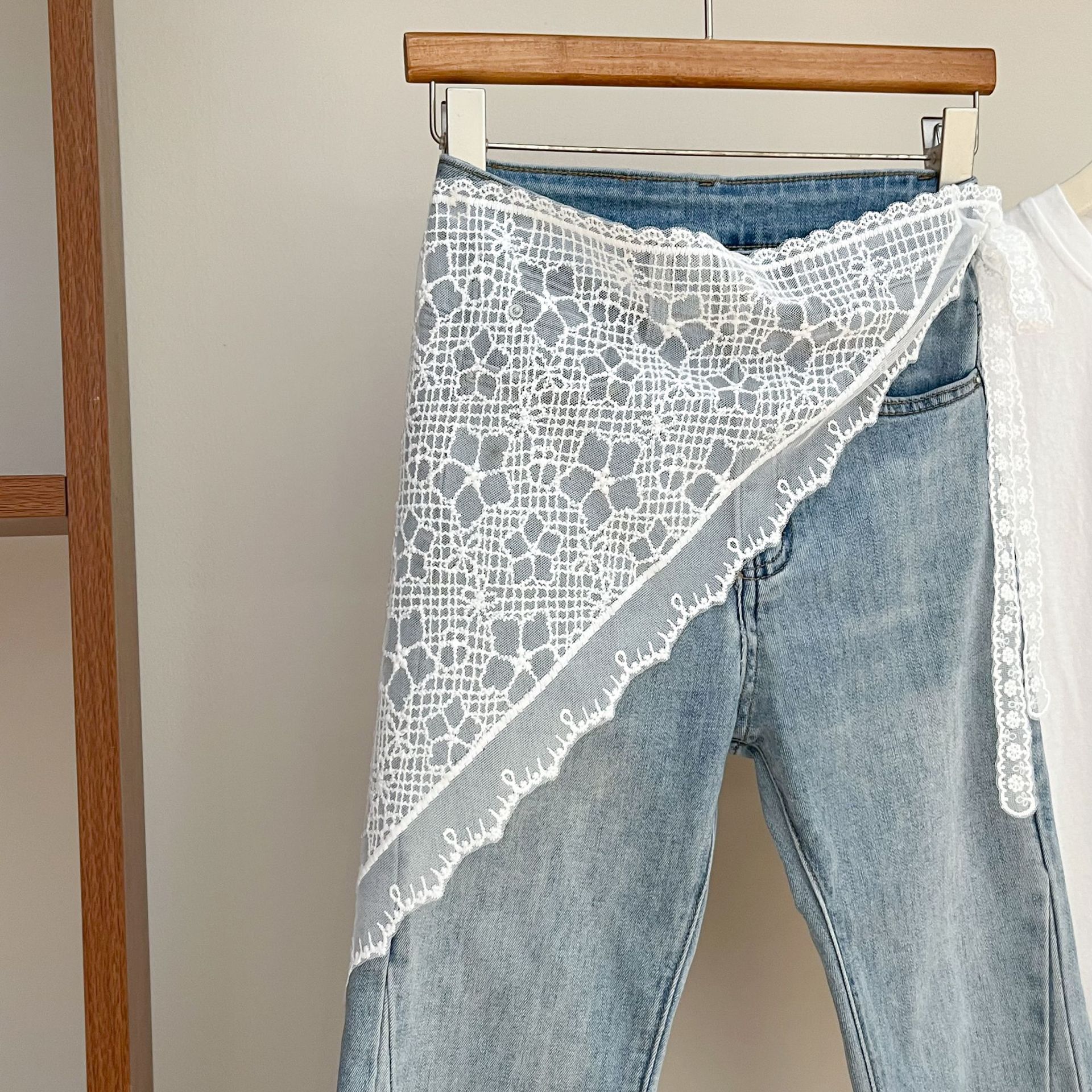 인터넷 축하 여름 레이스 패션 커튼 한국 스타일 올 매치 소녀 디자인 삼각형 수건 세련된 세련된 틈새 스커트 장식스토어 가기