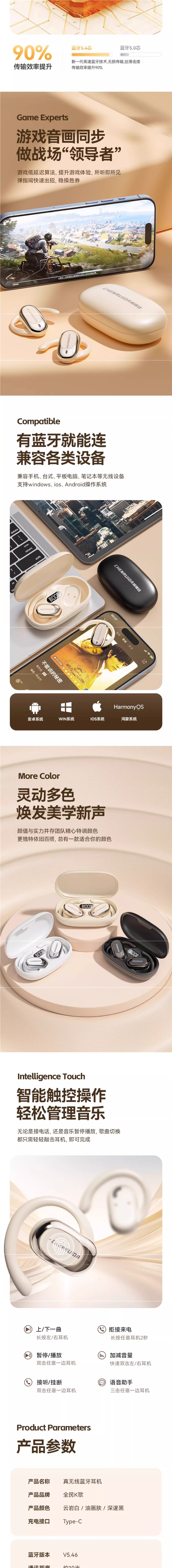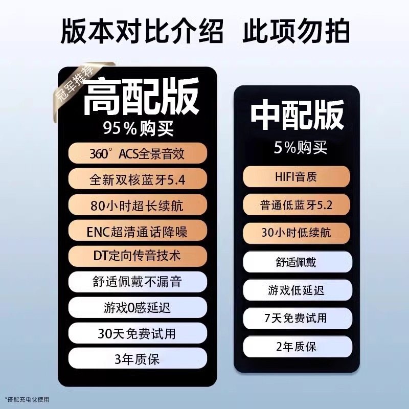 • 【딥 블랙◆고급 버전】소리 누출 없는 지향성 사운드 전송 및 소음 감소 + 5.4 듀얼 코어 칩 + 천 위안 Dolby 파노라마 무손실 사운드 효과 + e-스포츠 통화의 제로 감지 지연 + 즉시 사용 가능