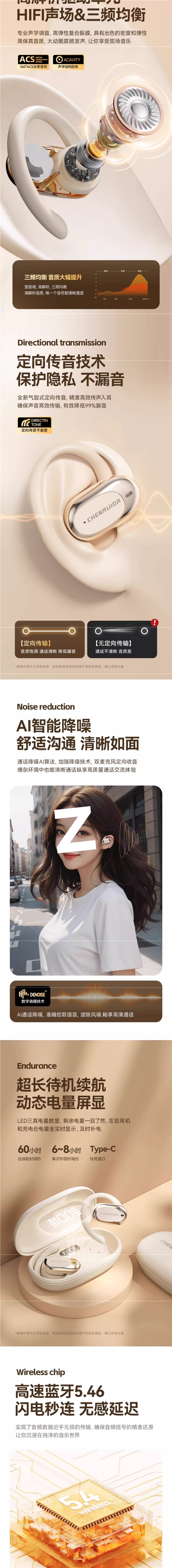 • 【옌윤바이◆고급 버전】소리 누출 없는 지향성 사운드 전송 및 소음 감소 + 5.4 듀얼 코어 칩 + 천 위안 Dolby 파노라마 무손실 사운드 효과 + e-스포츠 통화의 제로 감지 지연 + 즉시 사용 가능