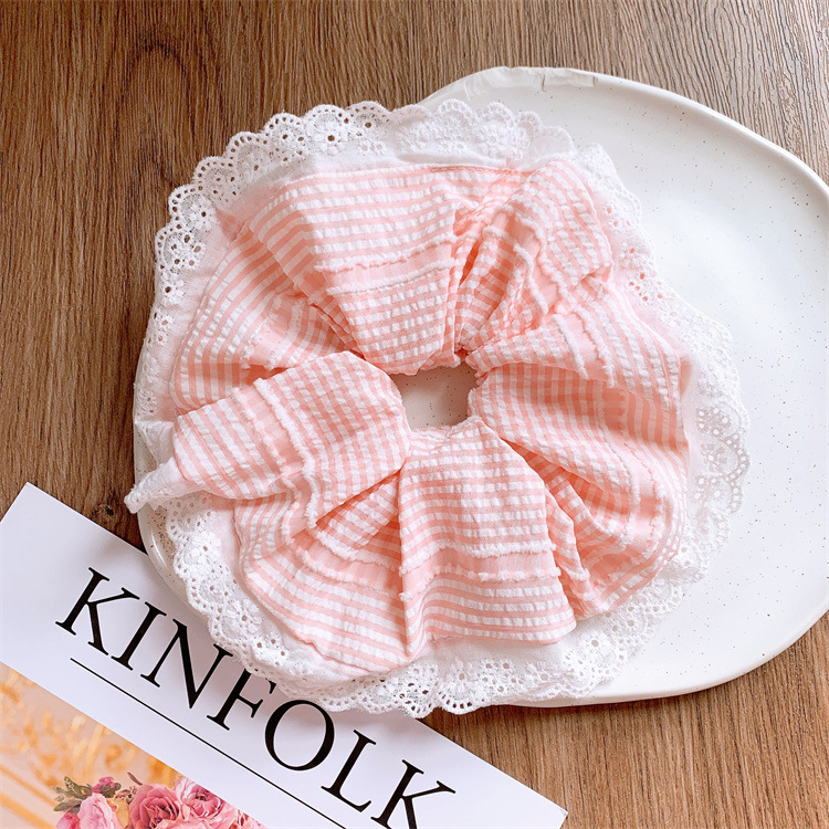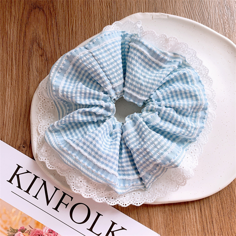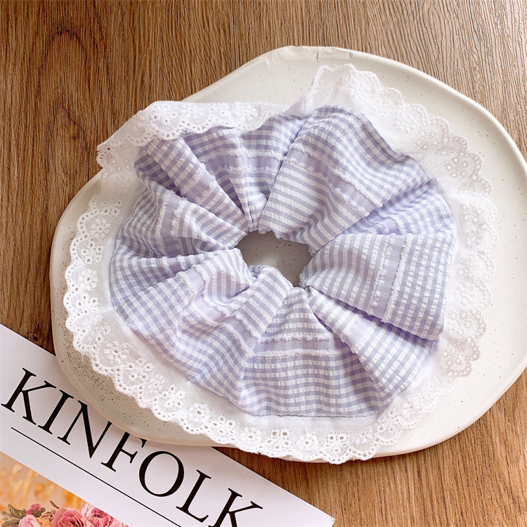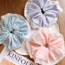 목가적 인 스타일 한국 스타일 격자 무늬 레이스 머리 반지 소녀들의 하트 레이스 대형 장내 머리 반지 사이드 말굽 화려한 여성 머리