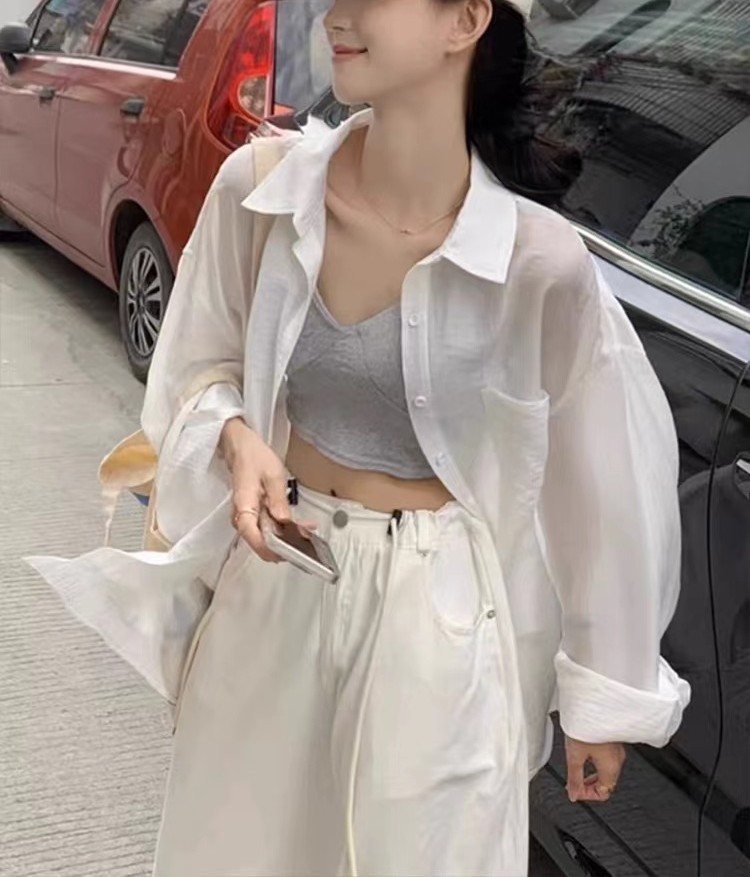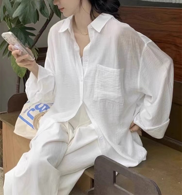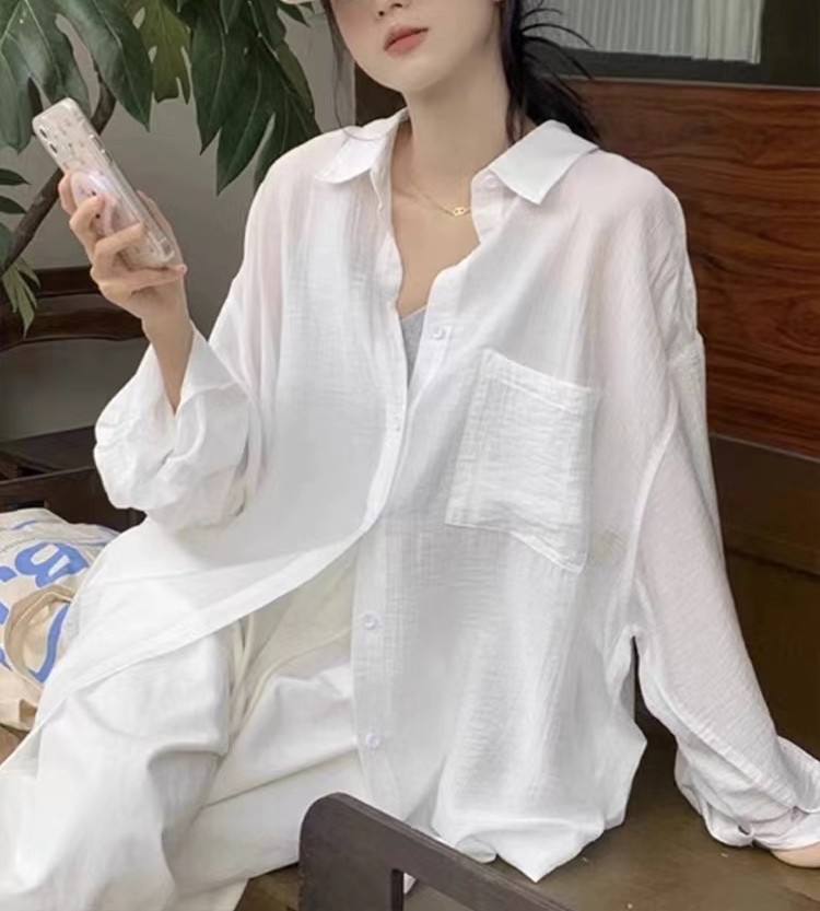 프랑스 스타일 화이트 코튼 선스크린 셔츠 코트 여성 여름 얇은 외부 카디건 여성용 셔츠 리넨 탑
