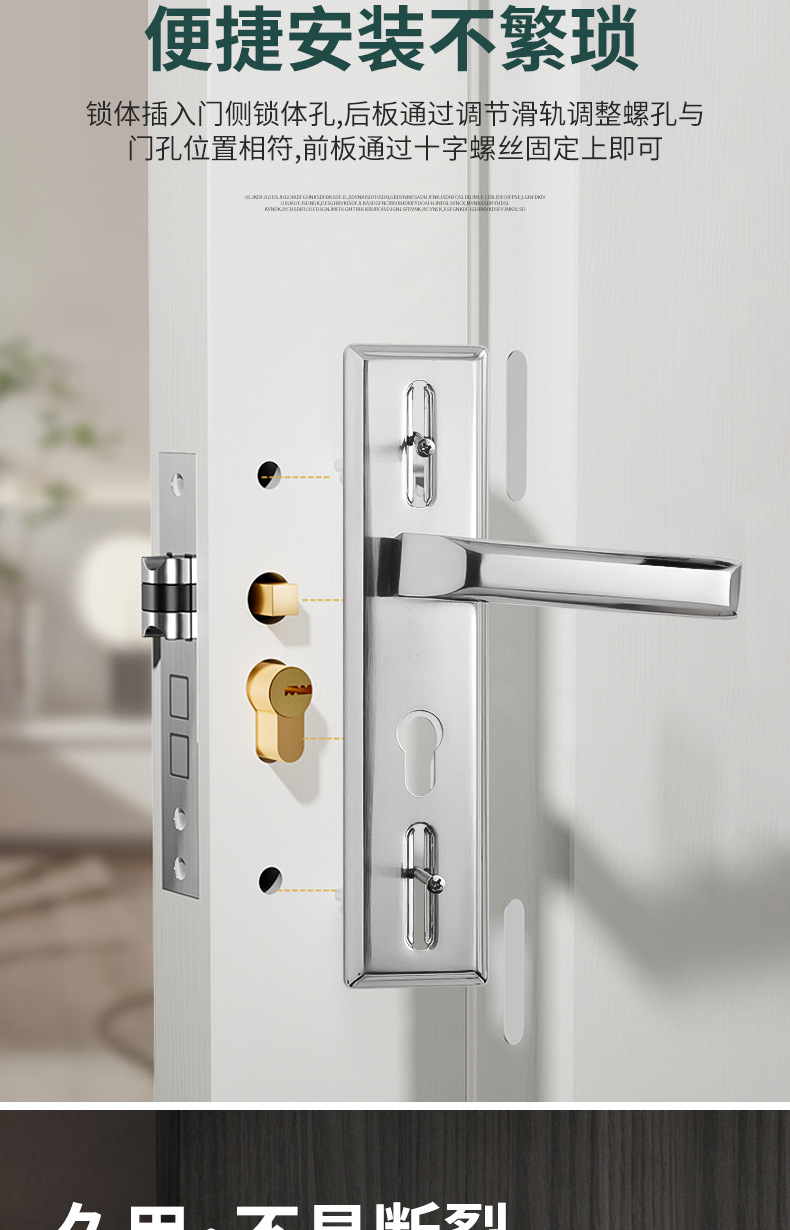침실용 범용 도어 잠금 장치, 오래된 도어 잠금 장치, 구멍을 뚫을 필요 없이 나무 문, 조절 가능한 도어 핸들 잠금 장치 3피스 세트