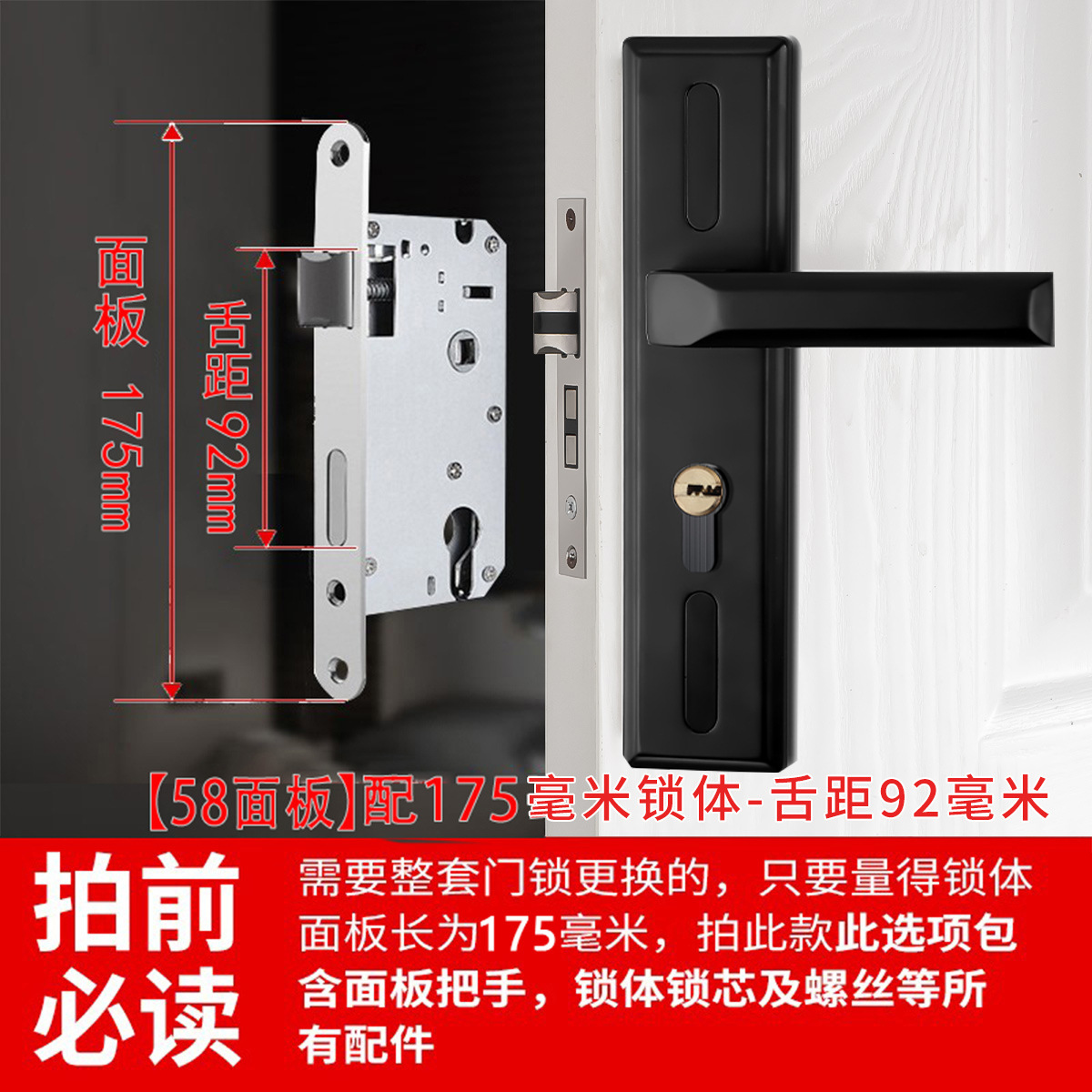 • 58 패널 블랙[완전 세트] 175 자물쇠 본체-텅 거리 92(둥근 자물쇠 본체) +35-50mm+유니버설 유형+키 포함