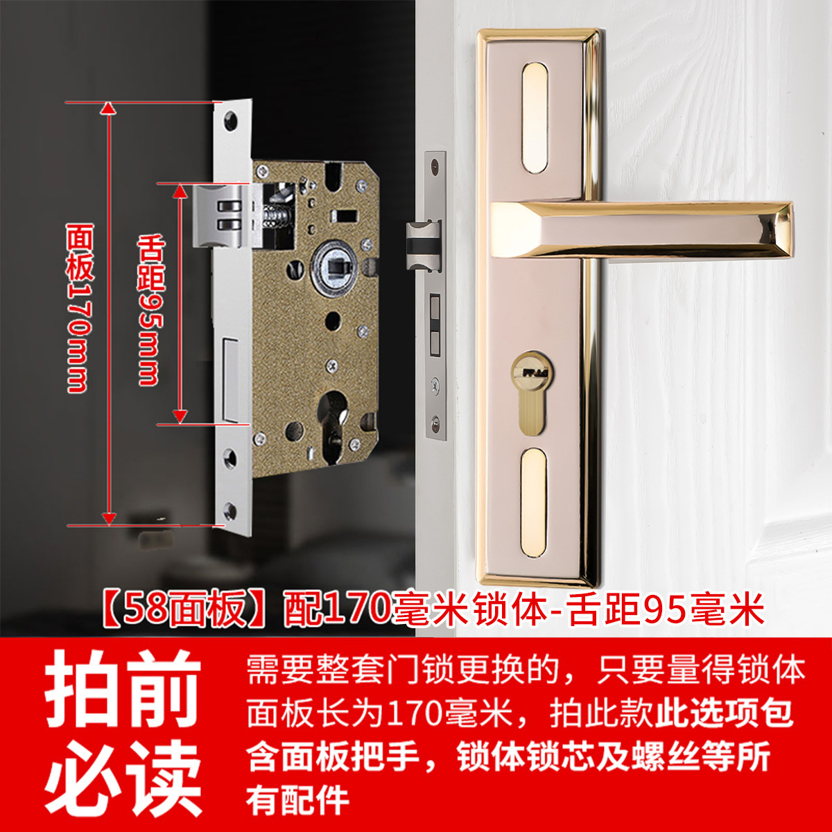 • 58 패널 골드 [완전한 세트] 170 잠금 본체-텅 거리 95+35-50mm+범용 유형+키 포함
