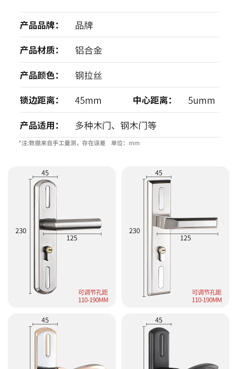 • 58 패널 실버[완전 세트] 180 자물쇠 본체-텅 거리 92(둥근 자물쇠 본체) + 35-50mm + 범용 유형 + 키 포함