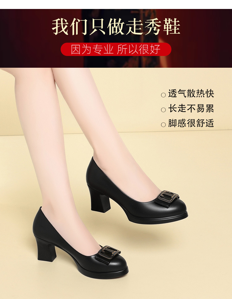 블랙 하이힐 여성 봄과 여름 새로운 기질 얕은 입 캣워크 신발 신발 방수 플랫폼 가죽 신발스토어 가기