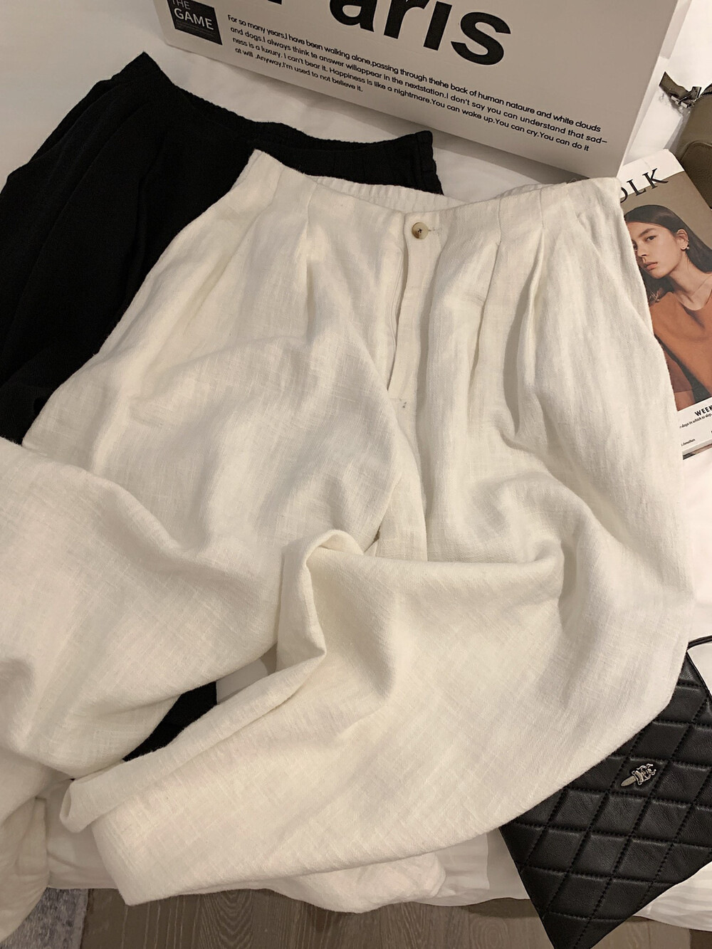화이트 라미 와이드 레그 팬츠 여자 2025 봄 게으른 스타일 올 매치 루즈 투약 린넨 스트레이트 롱 팬츠