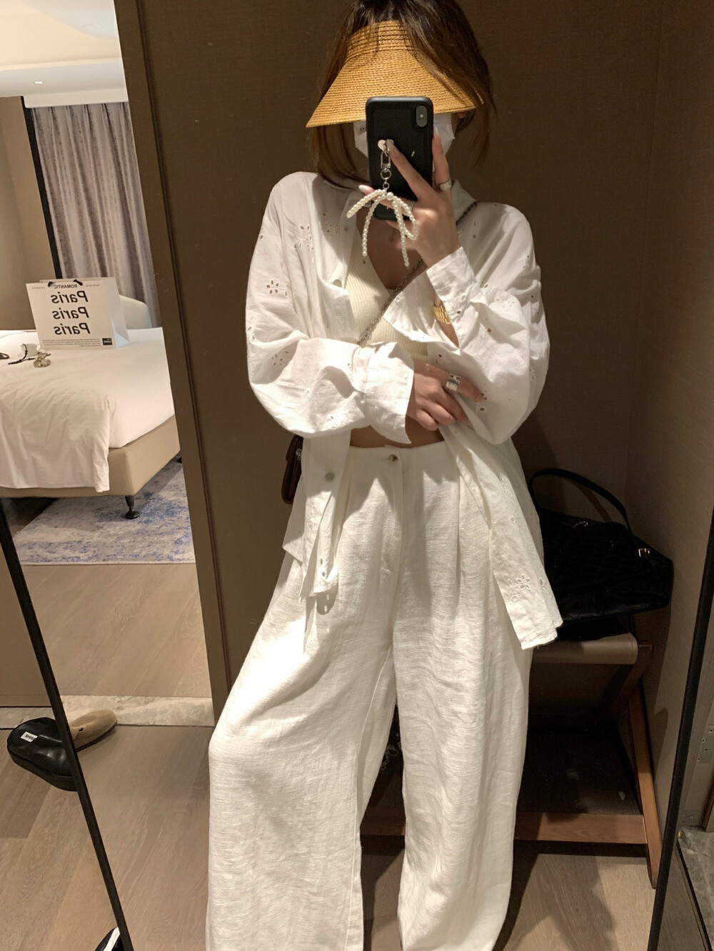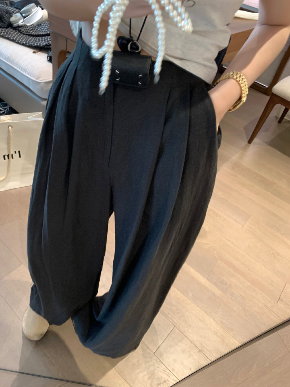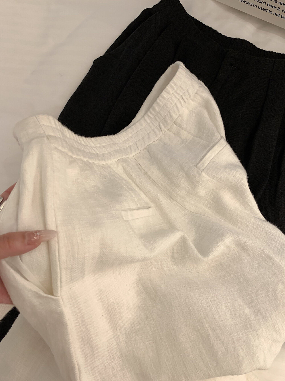 화이트 라미 와이드 레그 팬츠 여자 2025 봄 게으른 스타일 올 매치 루즈 투약 린넨 스트레이트 롱 팬츠스토어 가기