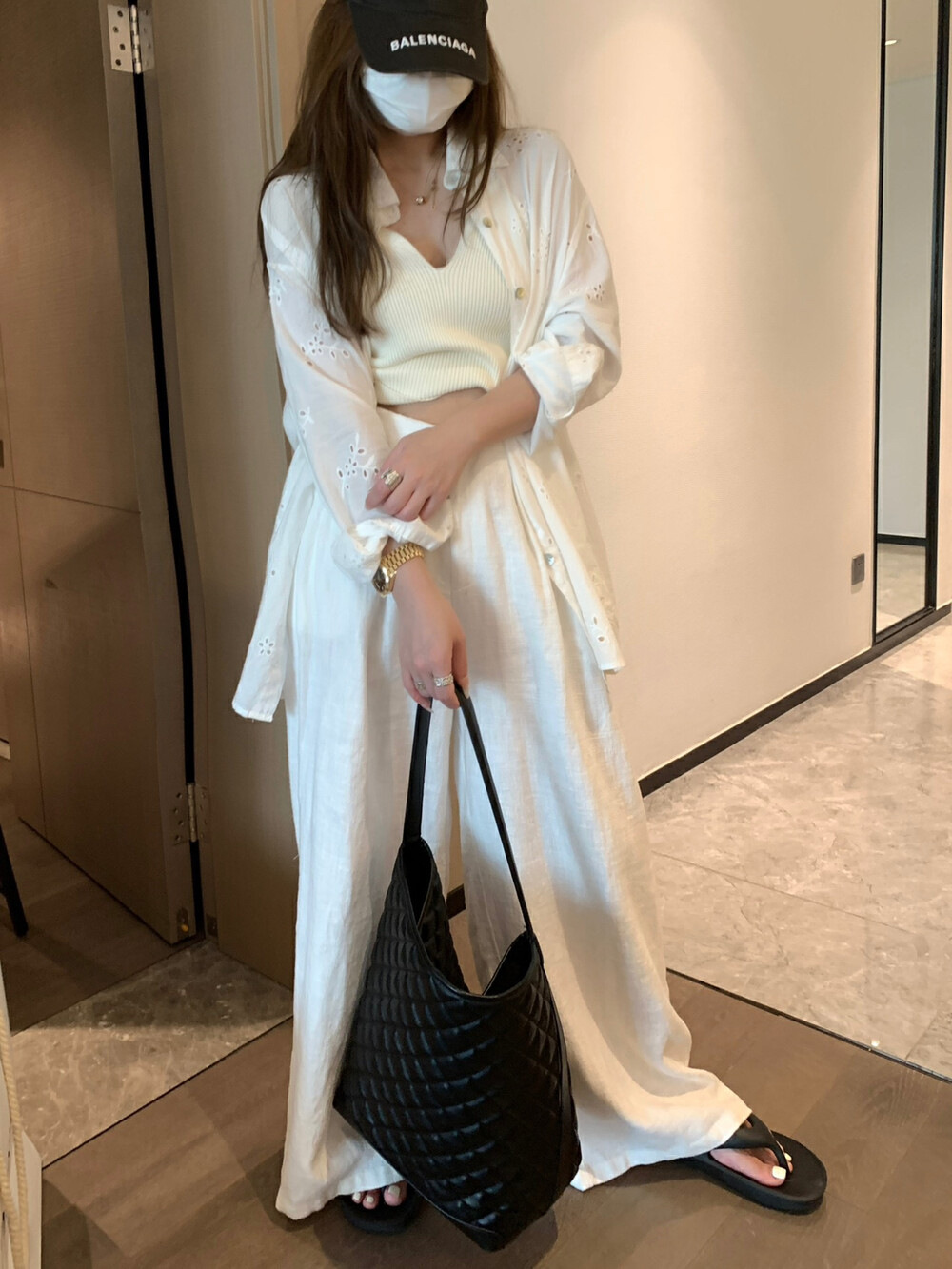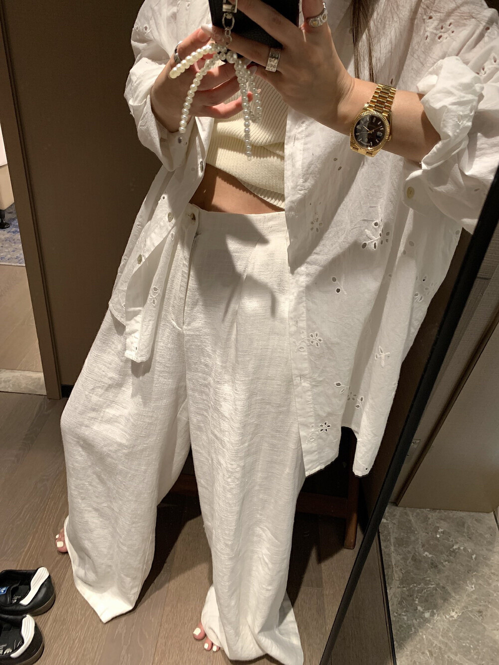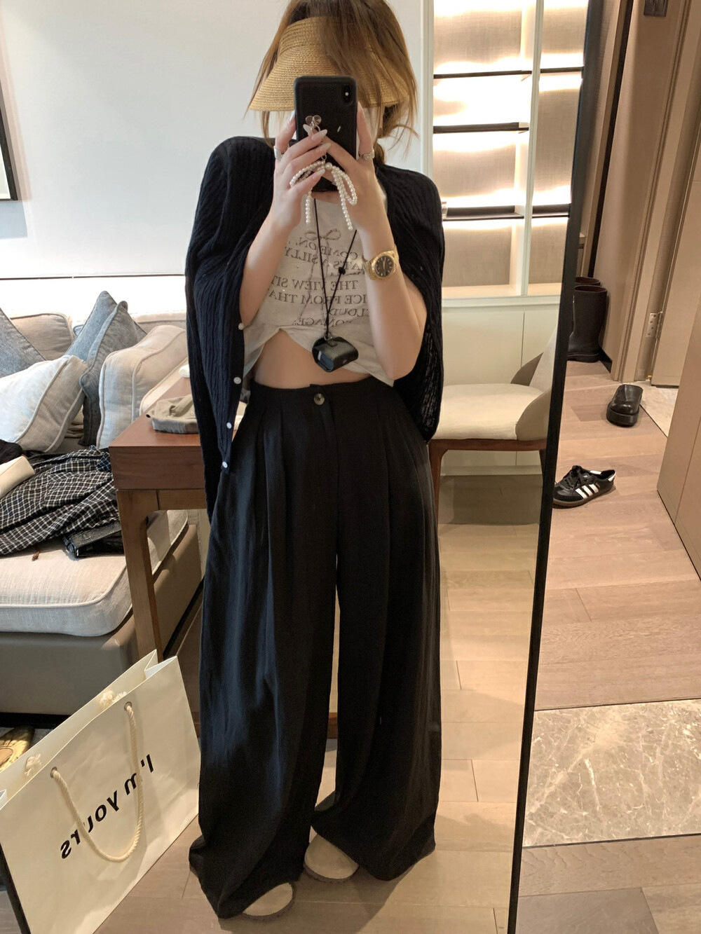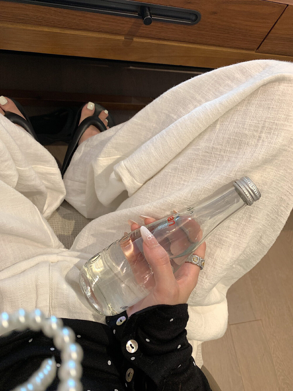 화이트 라미 와이드 레그 팬츠 여자 2025 봄 게으른 스타일 올 매치 루즈 투약 린넨 스트레이트 롱 팬츠스토어 가기
