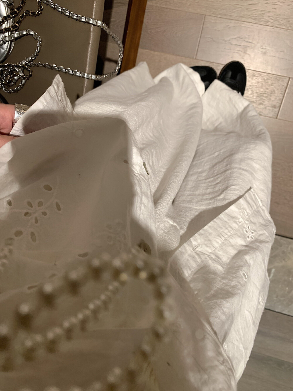 • 흰색 와이드 팬츠(뒷면 신축성)