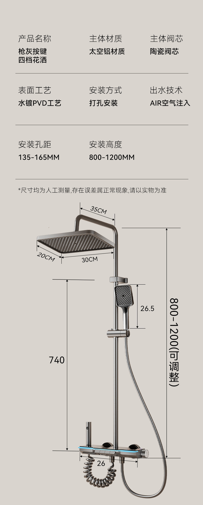 샤워 세트 건 그레이 샤워기 샤워기 가정용 가압 노즐 욕실 샤워 레인 라이트 럭셔리