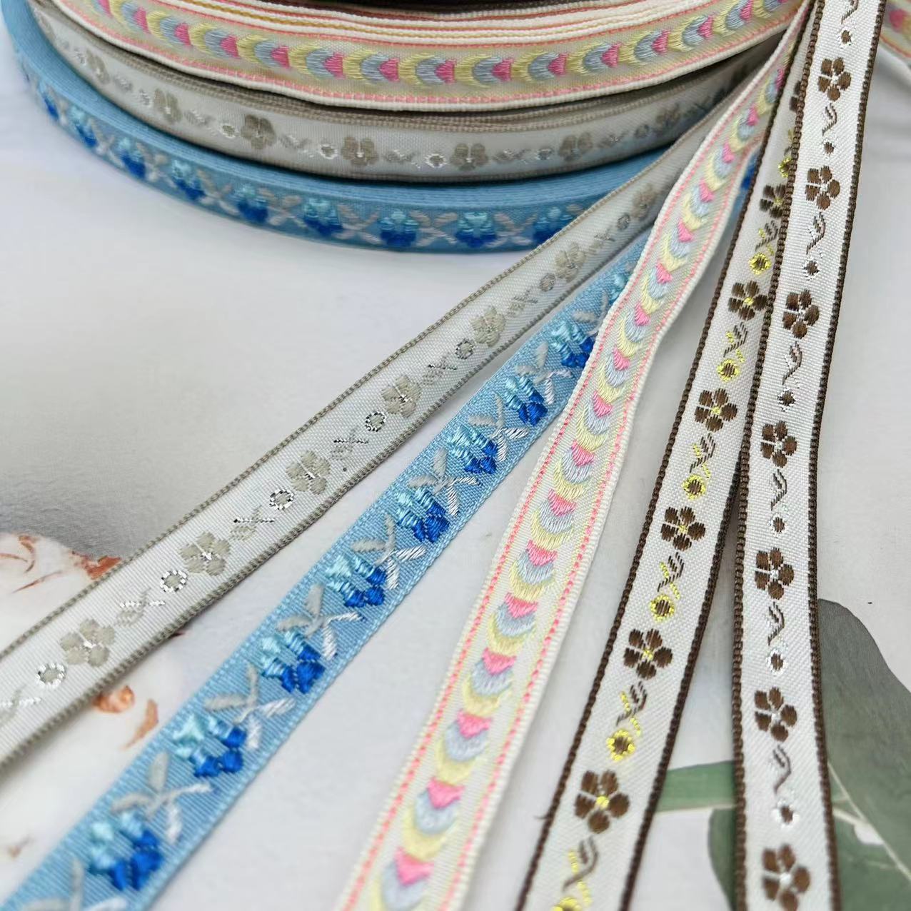 리본 골드와 실버 실크 꽃 민족 스타일 자카드 리본 어린이 의류 액세서리 리본 보석 홈 장식 레이스