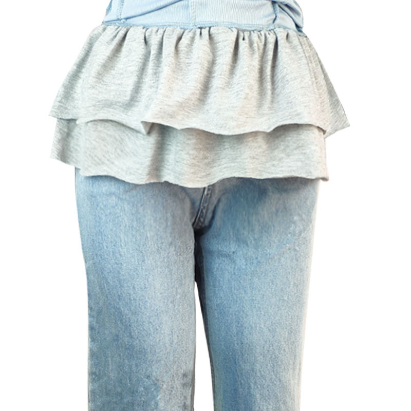 봄, 가을 베이스 레이어 더블 레이어 스웨트 셔츠 밑단, 다용도 흰색 가장자리 짧은 스커트, 여성용 솔리드 컬러 스커트스토어 가기