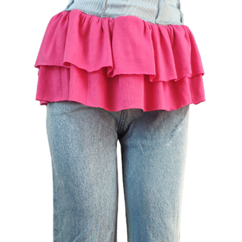봄, 가을 베이스 레이어 더블 레이어 스웨트 셔츠 밑단, 다용도 흰색 가장자리 짧은 스커트, 여성용 솔리드 컬러 스커트