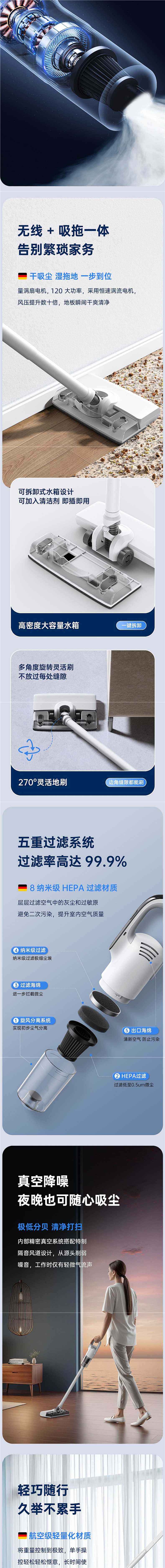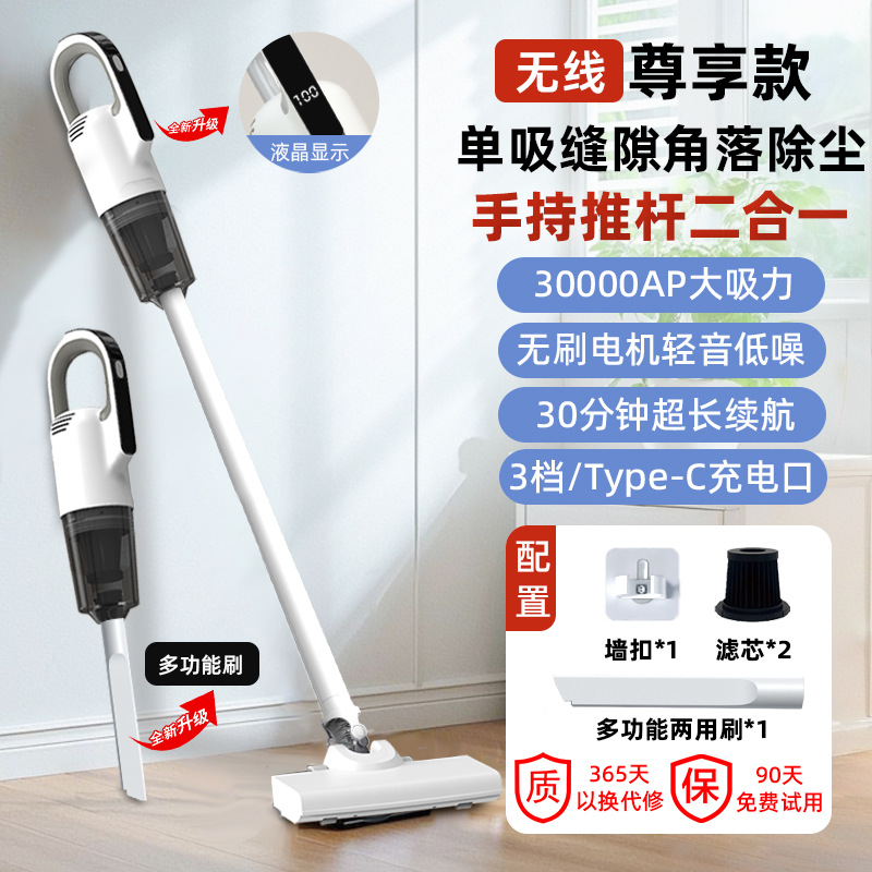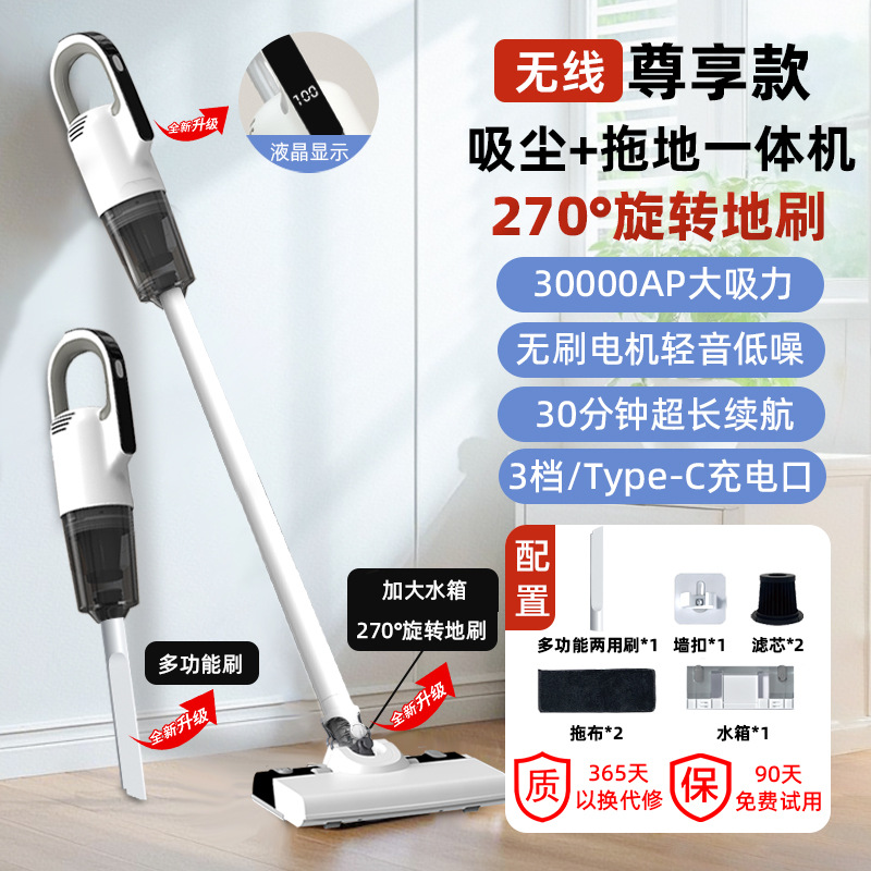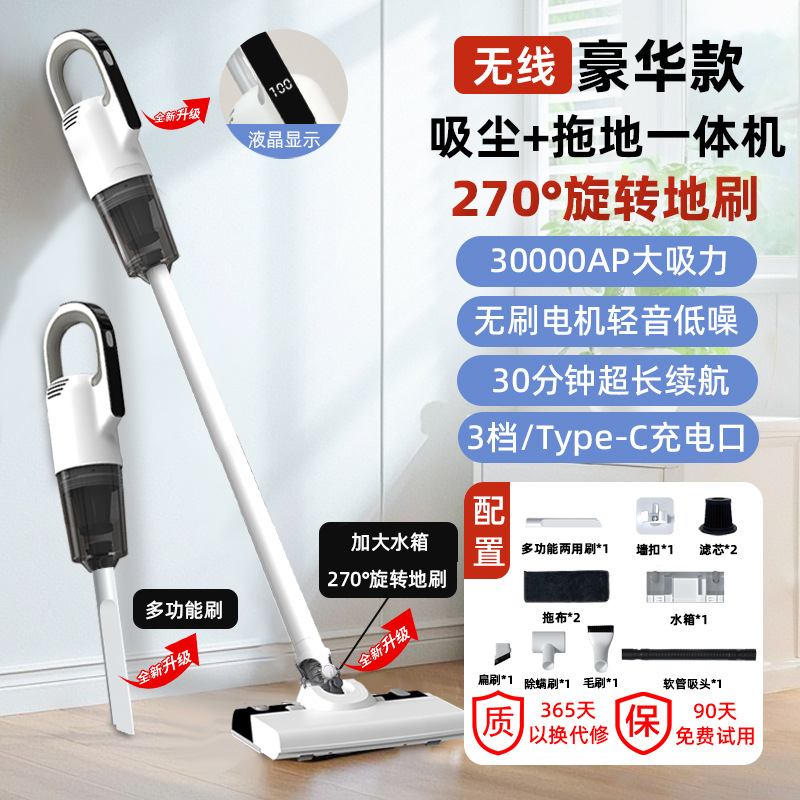 • 무선 | 새롭게 업그레이드된 디지털 디스플레이 3단계 | 흡입 및 걸레질 [럭셔리 모델] 벽 버클 * 필터 요소 + 걸레 * 2 + 브러시 헤드 * 3 * 진드기 제거 브러시 * 호스