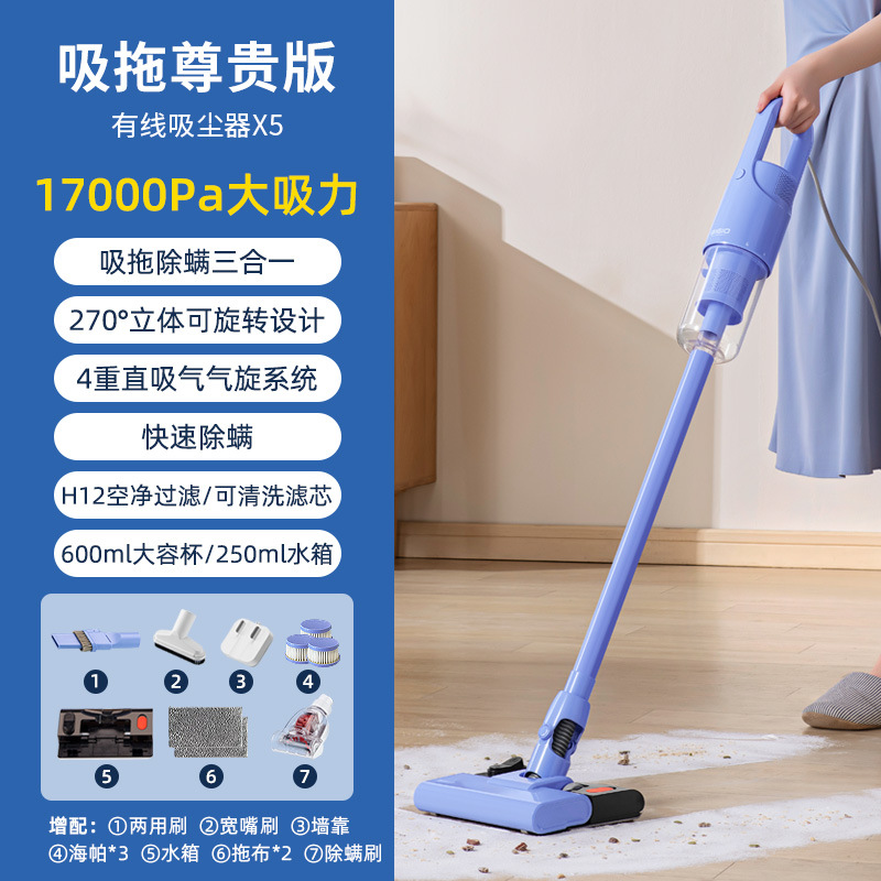 • 유선 [럭셔리 모델] 흡입 및 걸레질 일체형 400W 대용량 흡입 + 겸용 브러시 + 물탱크 + 벽걸이 + 하이파 * 1 + 걸레 * 2 + 어댑터 + 다기능 넓은 입 브러시