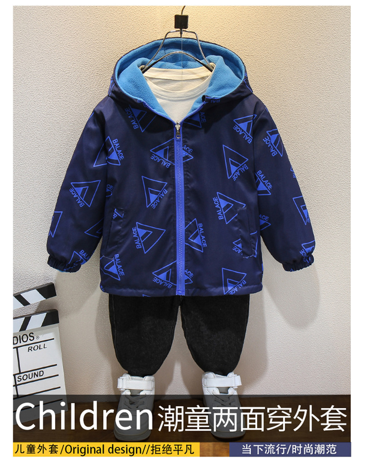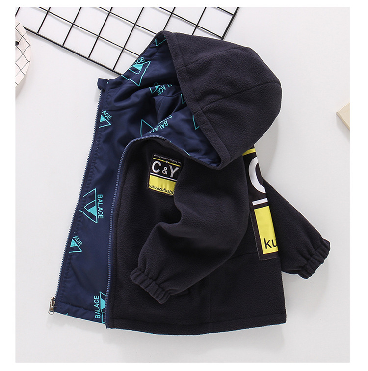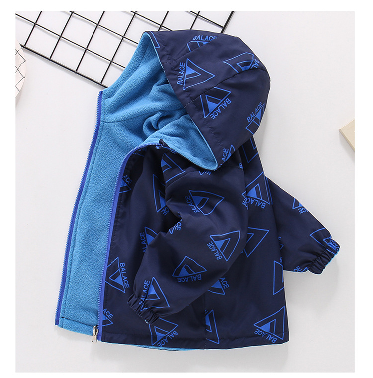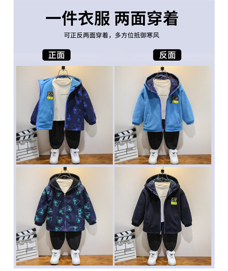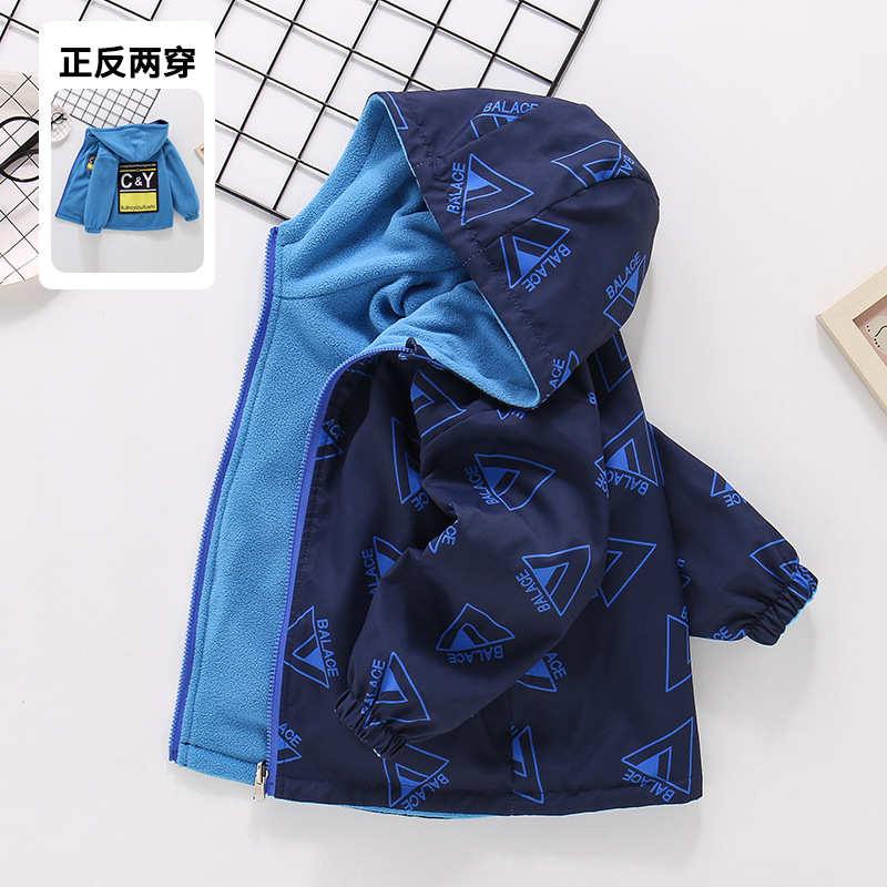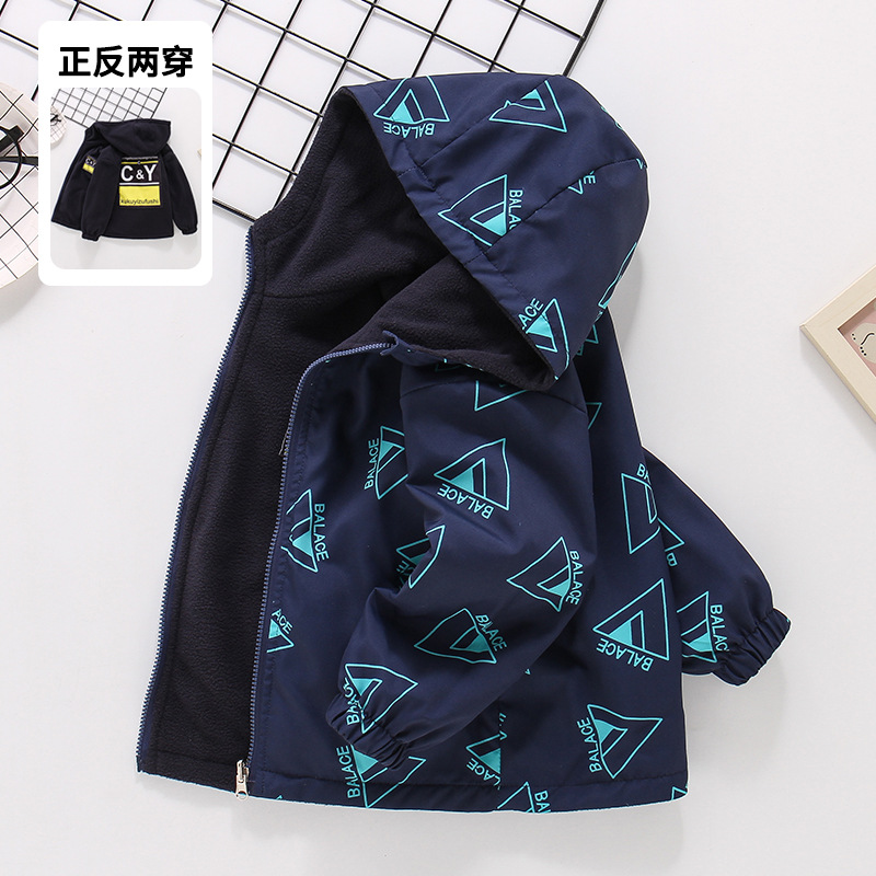 2025년 신형 남아 가을 양면 재킷 플러스 벨벳 중대형 아동 상의 봄 가을 윈드 브레이커 폴라 플리스 재킷스토어 가기