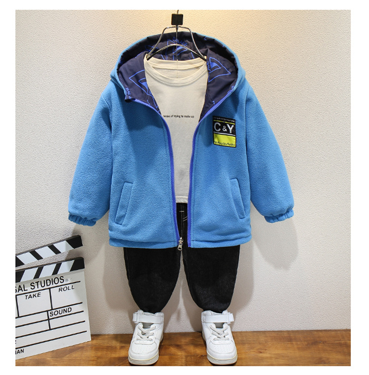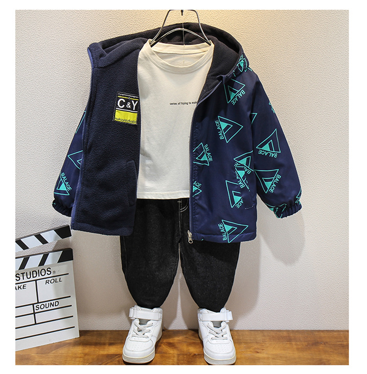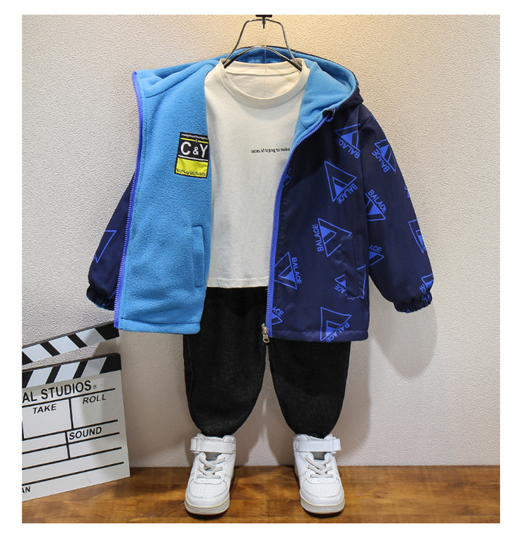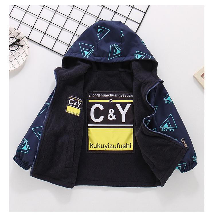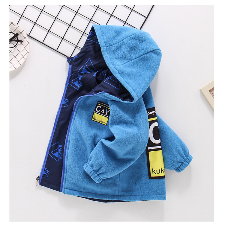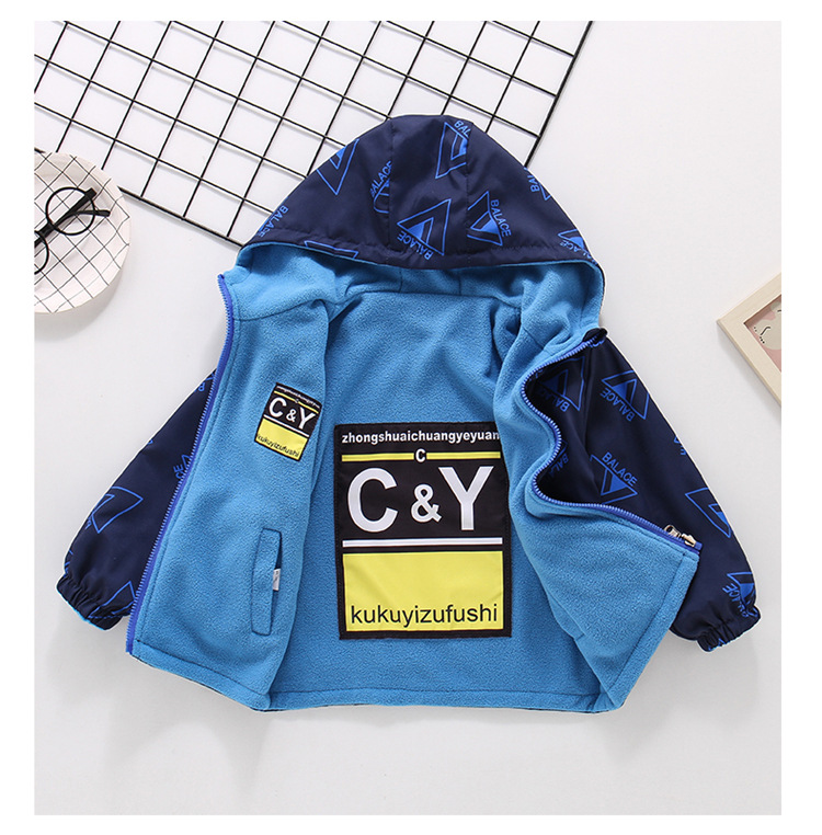 2025년 신형 남아 가을 양면 재킷 플러스 벨벳 중대형 아동 상의 봄 가을 윈드 브레이커 폴라 플리스 재킷스토어 가기
