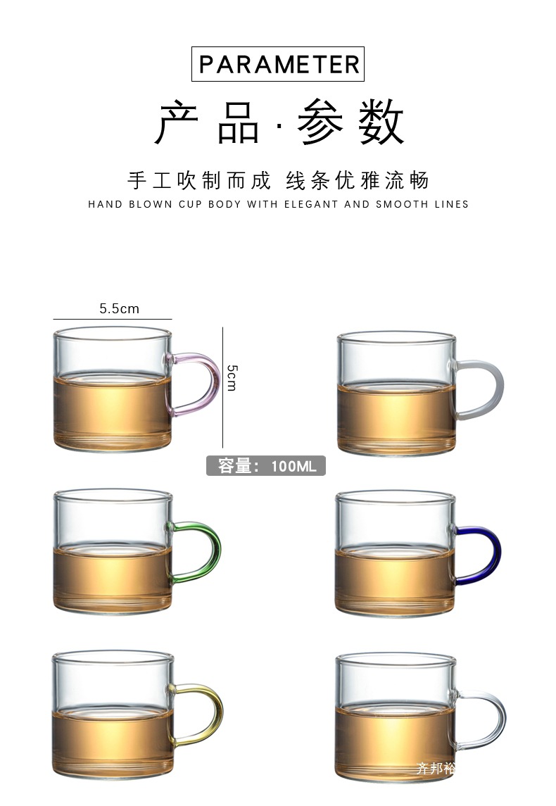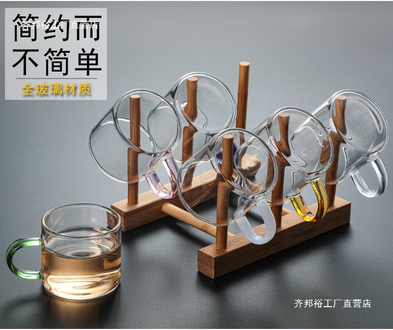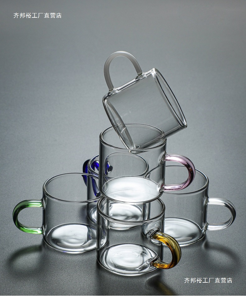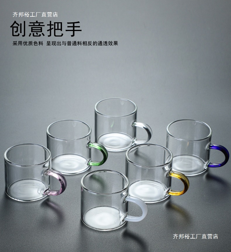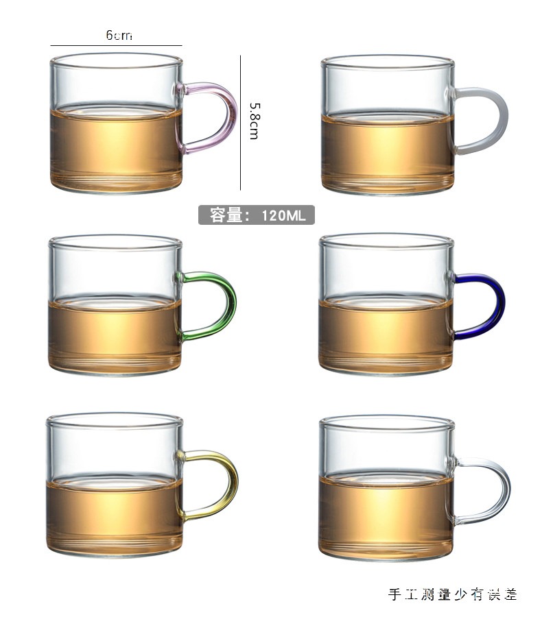 두꺼운 내열 유리 티 컵 작은 티 컵 핸들 컵 쿵푸 티 세트 티 이어 컵 티 그릇 가정용 세트