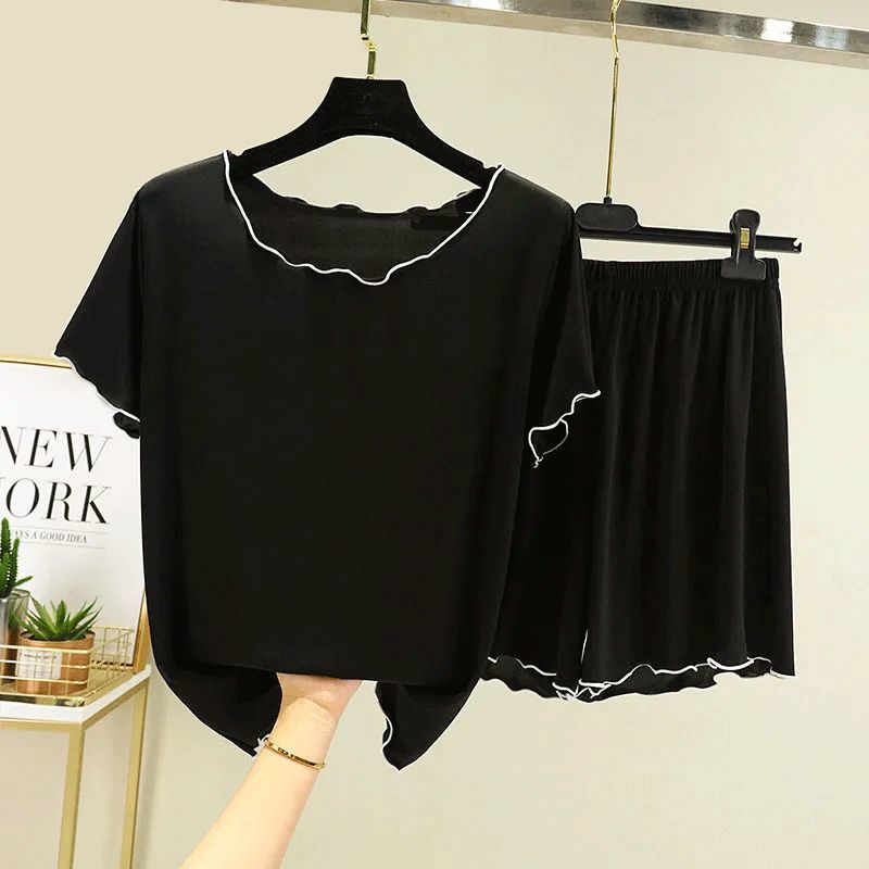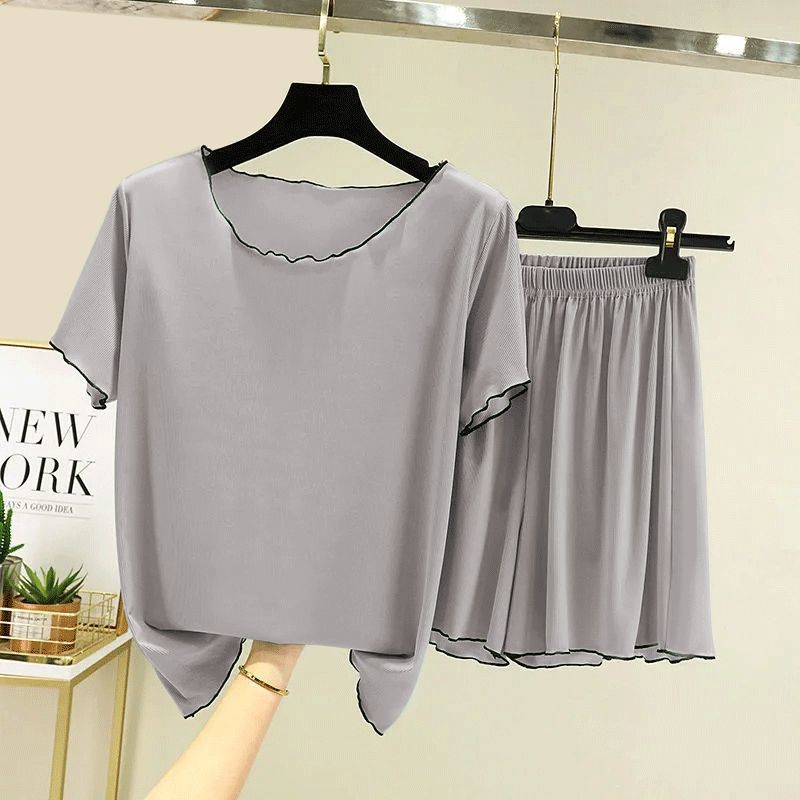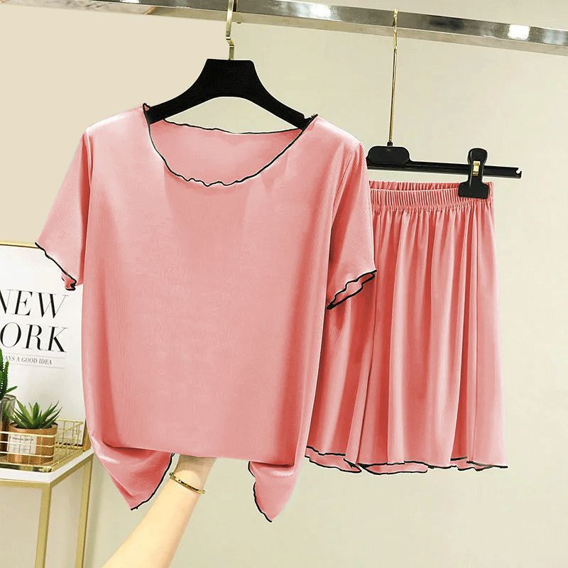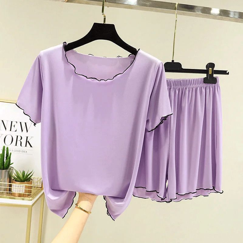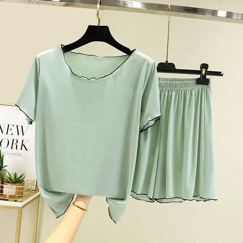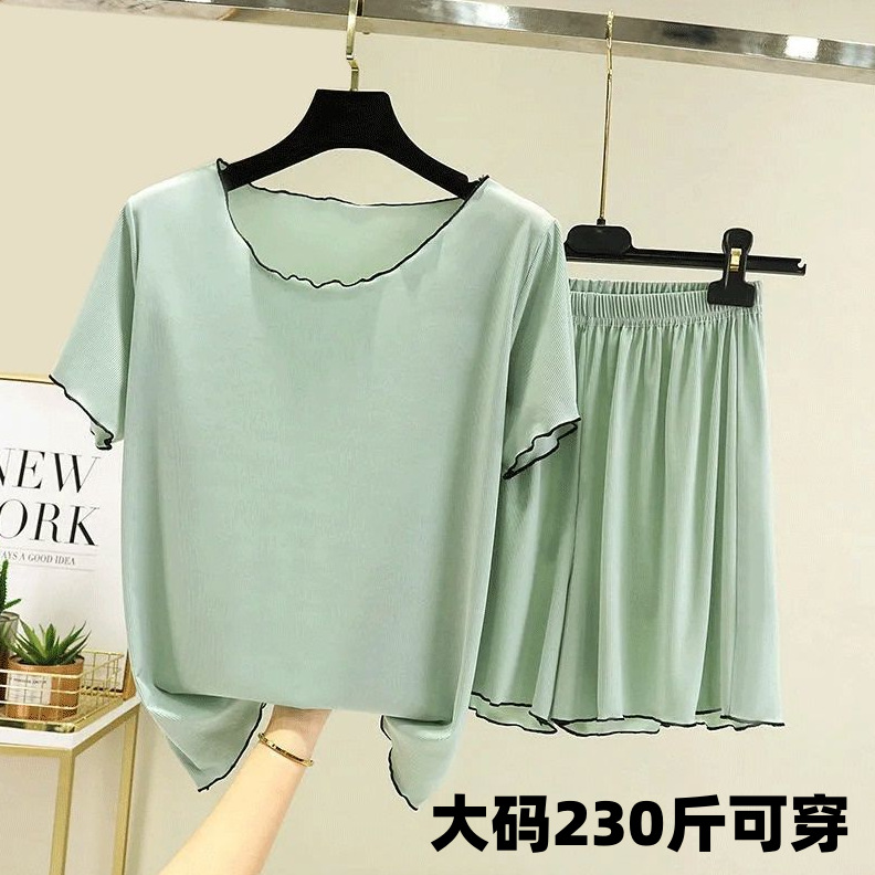 아이스 실크 플러스 사이즈 정장 여성 느슨한 100kg FatMM Homewear 새로운 잠옷 여성 반팔 투피스 세트 여름스토어 가기