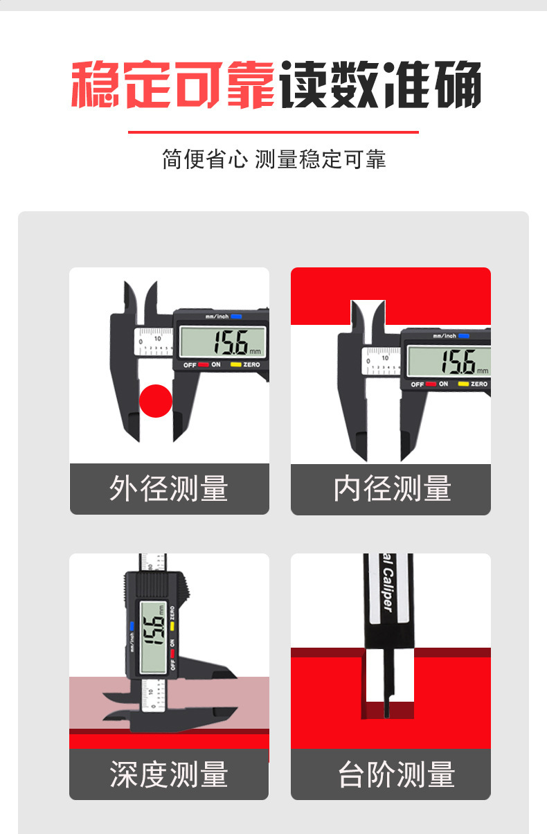 • 【 1.7inch 】 섬유 디지털 캘리퍼스 150mm-배터리 포함