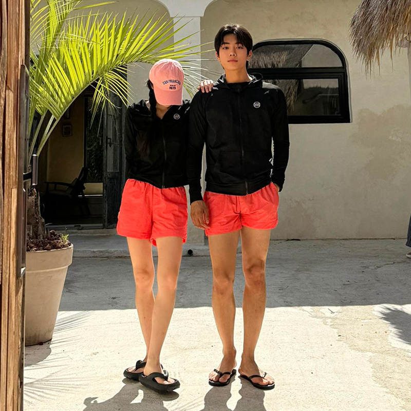 • 블랙+레드, 오렌지 투피스 세트, 남성용, 여성용 동일 스타일