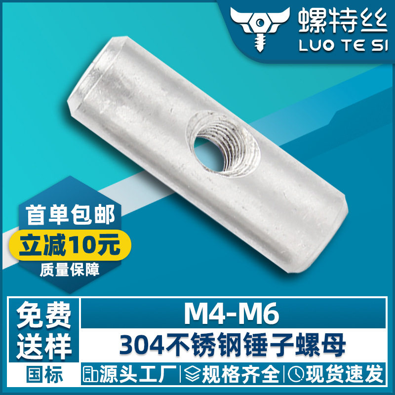 304 스테인레스 스틸 해머 너트 원통형 핀 수평 구멍 너트 해머 헤드 너트 사전 매립 부품 연결 해머 너트 M4M5M6스토어 가기