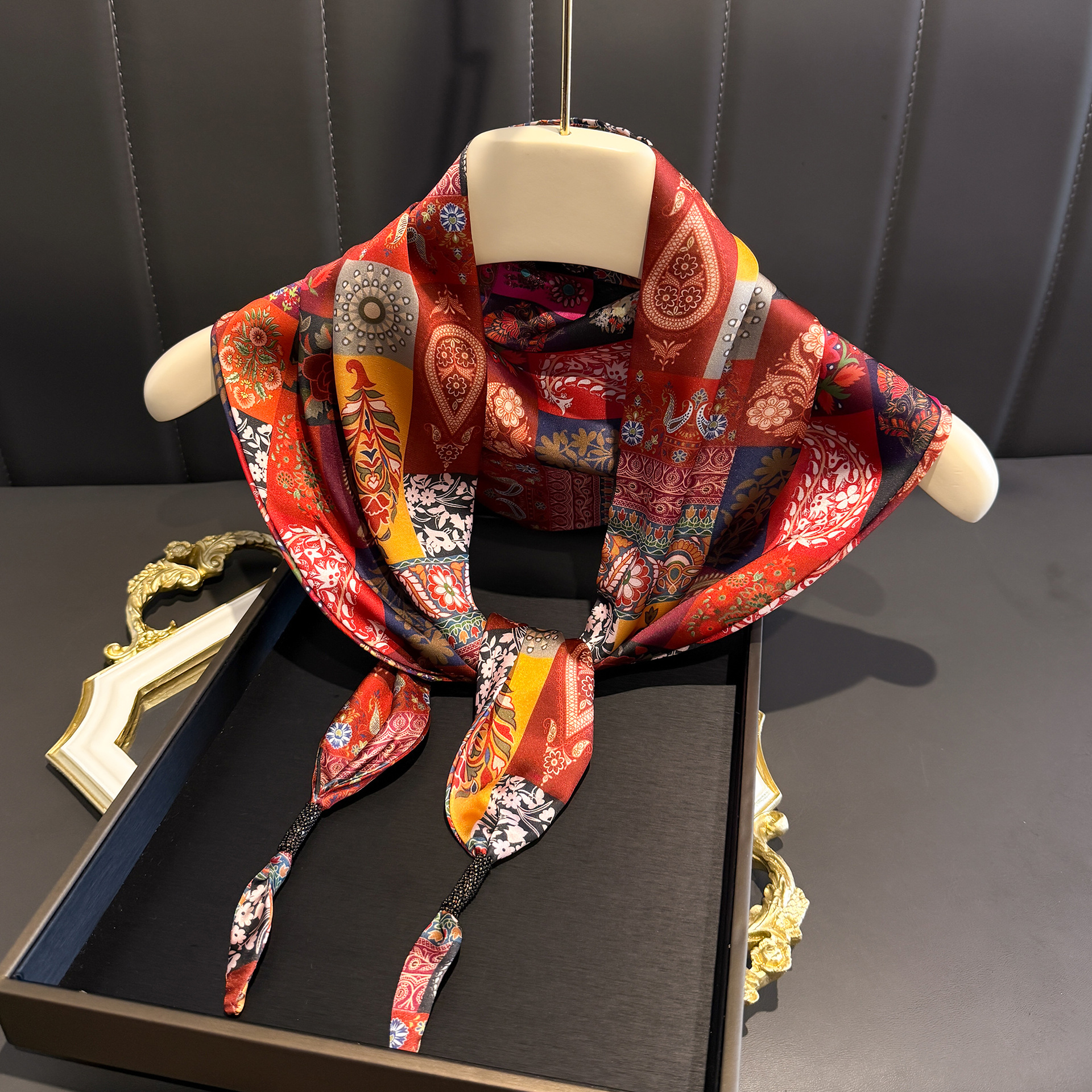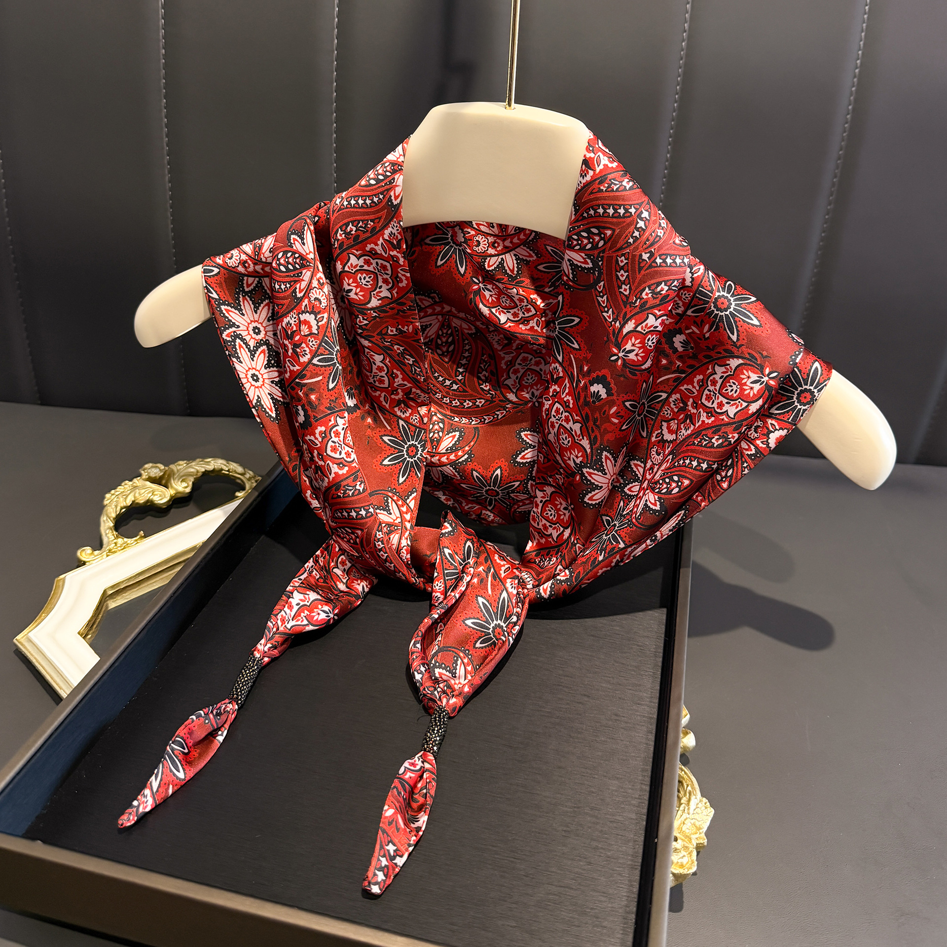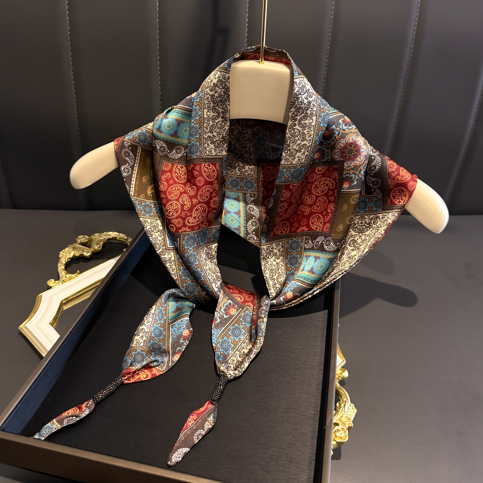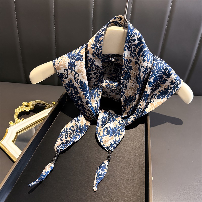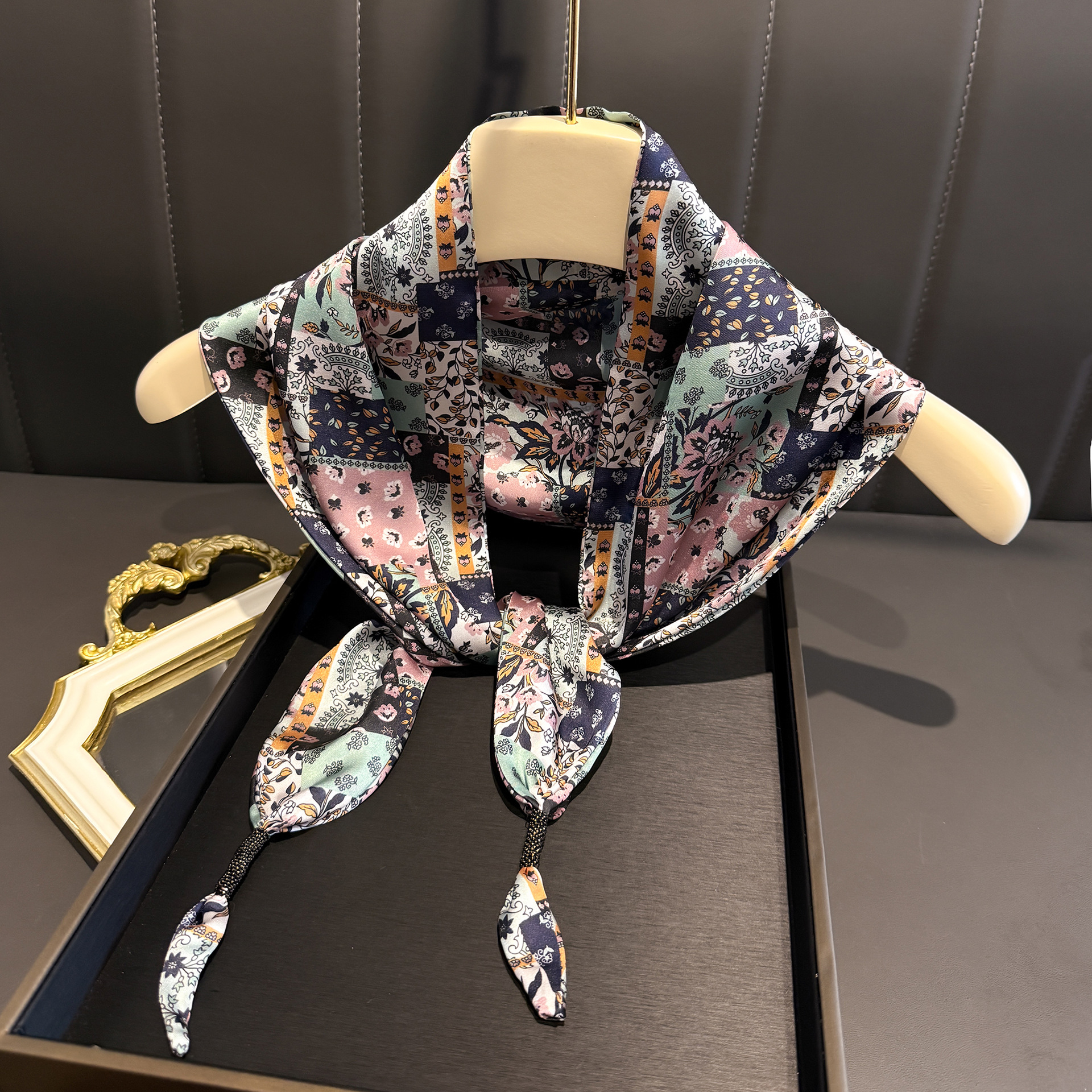 새로운 복고풍 모방 실크 삼각형 스카프 일본식 신선한 새로운 넥타이 염색 실크 스카프 예술적 올매치 실크 스카프 여성