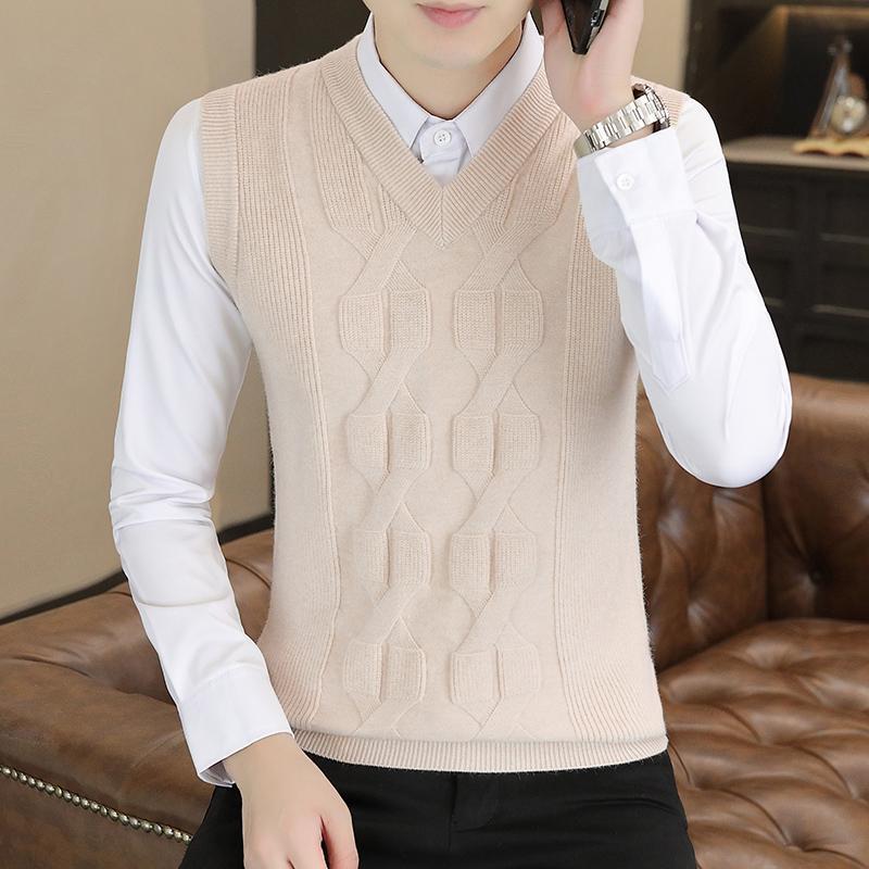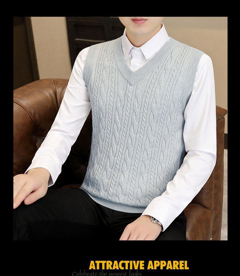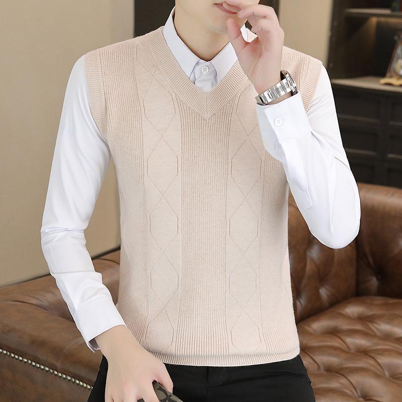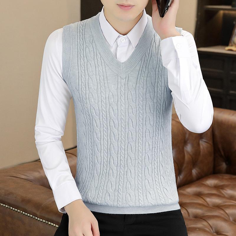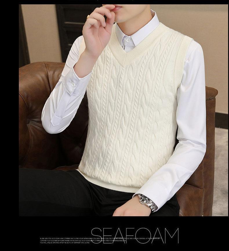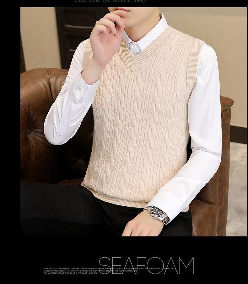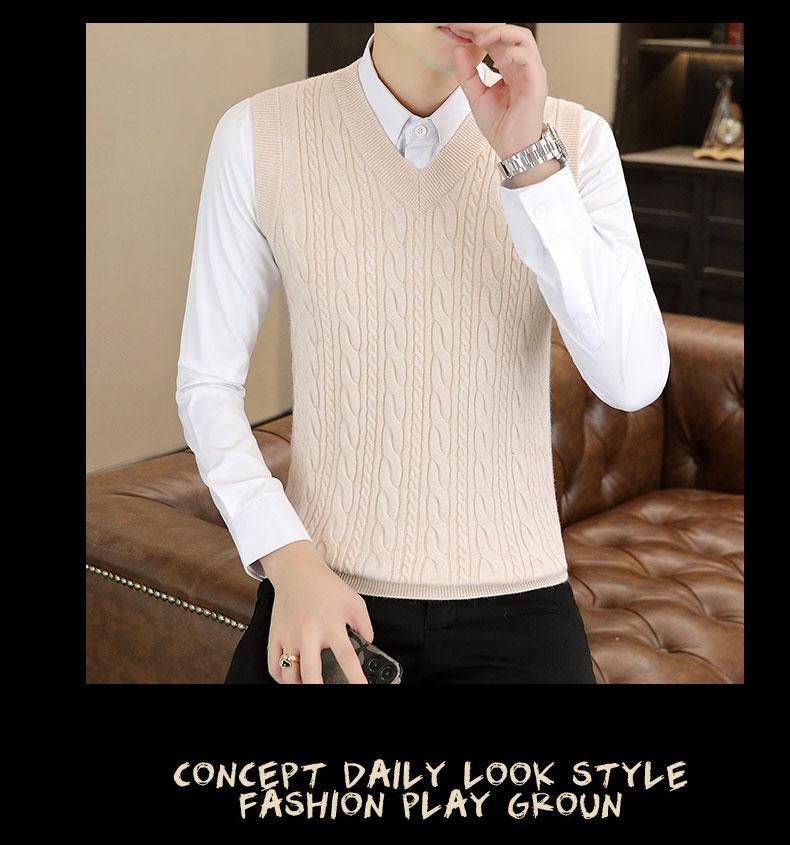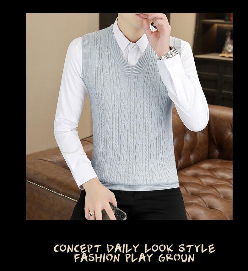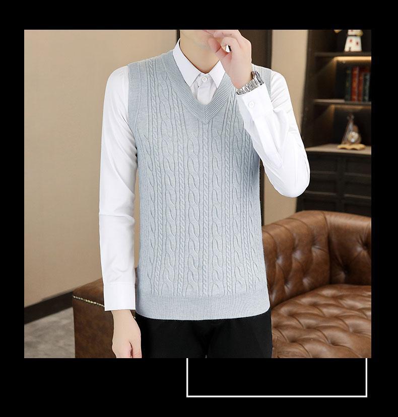 초봄 스웨터 조끼 남성 트렌디 슬림핏 민소매 조끼 청소년 니트 베이스 레이어 V 넥 조끼스토어 가기