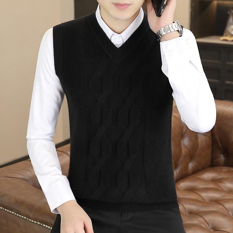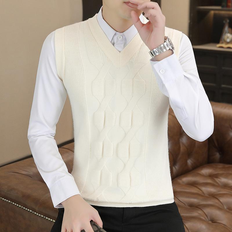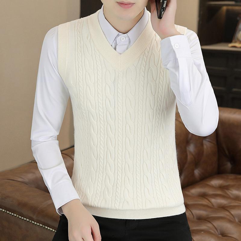 초봄 스웨터 조끼 남성 트렌디 슬림핏 민소매 조끼 청소년 니트 베이스 레이어 V 넥 조끼